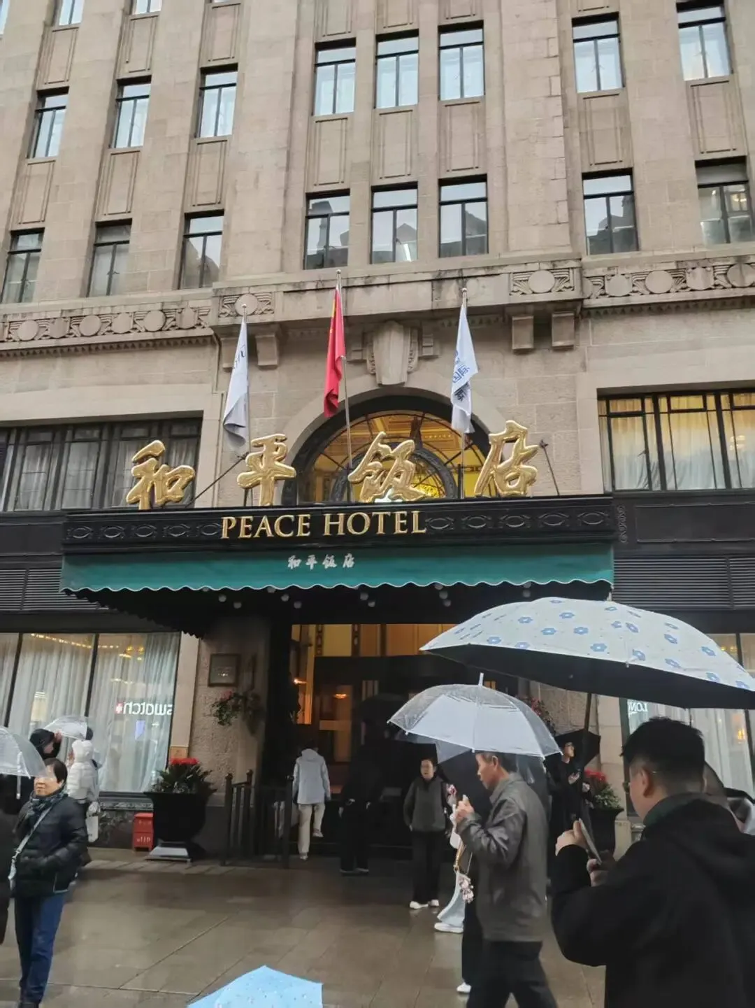 雨中的和平饭店,百年风华与摩登烟火在此相遇🌧️