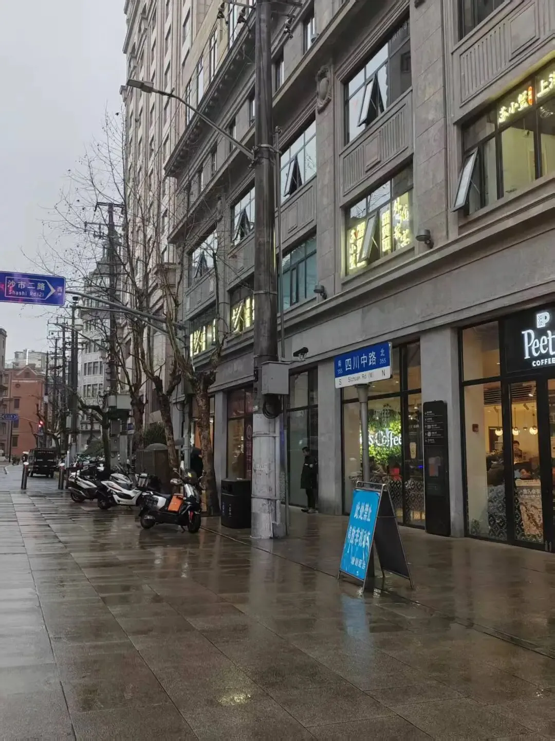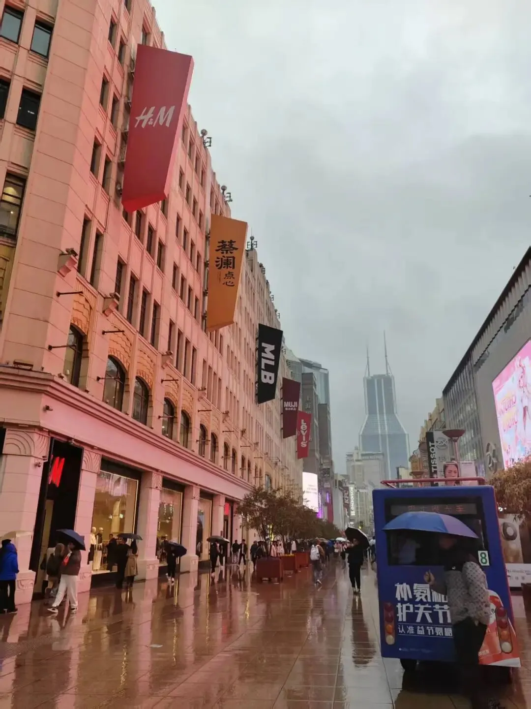 漫步在中华第一街,雨水打湿了街道,霓虹灯光倒映在湿漉漉的地面,浪漫又治愈。百年建筑静静矗立,车水马龙穿梭不息,一边是老上海的复古风华,一边是现代都市的繁华喧嚣,时光在这里缓缓流淌,每一步都藏着独属于魔都的韵味。