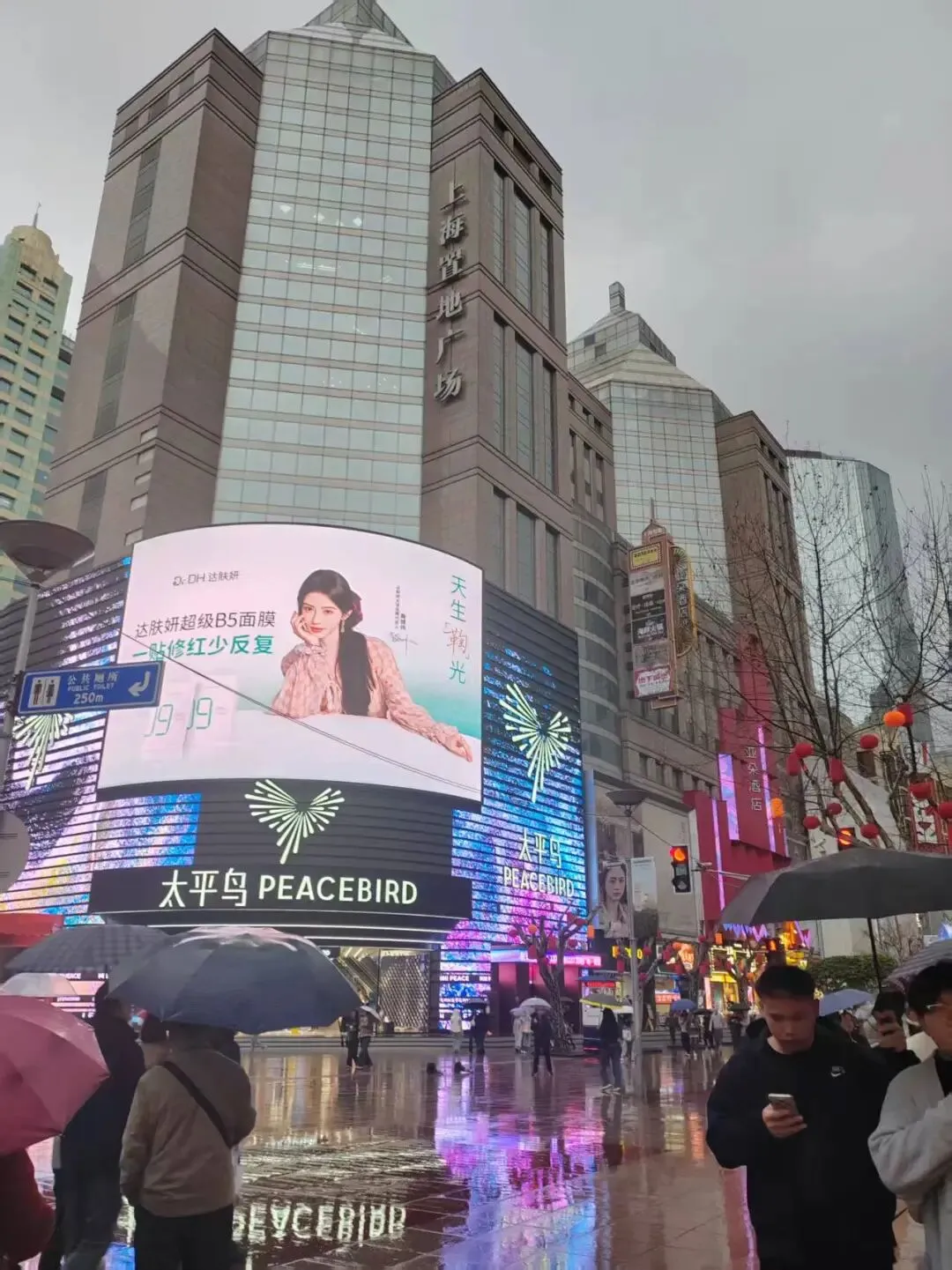 雨天的南京路步行街,人潮与霓虹,都是魔都的浪漫