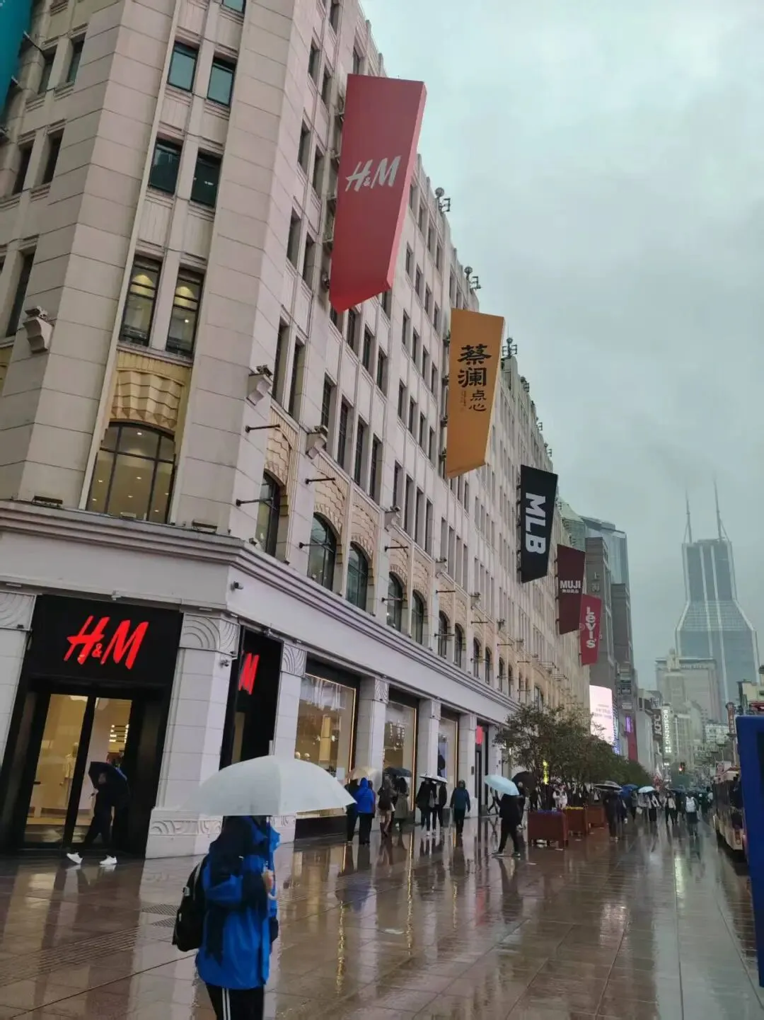 雨中逛南京路,一边是百年建筑,一边是都市繁华