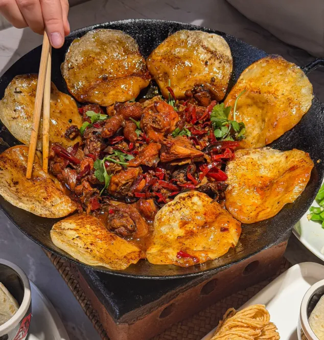 地锅鸡:铁锅架柴火,鸡肉炖得酥烂。去户部山老灶铺最香。 关键提示:趁锅边贴饼子冒泡时夹一口,真滋味就在那一咬。