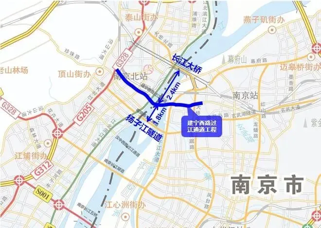 它一头连着南京站,一头连着南京北站。整条线路全长20.4公里,其中隧道段14公里,列车从江底穿行。