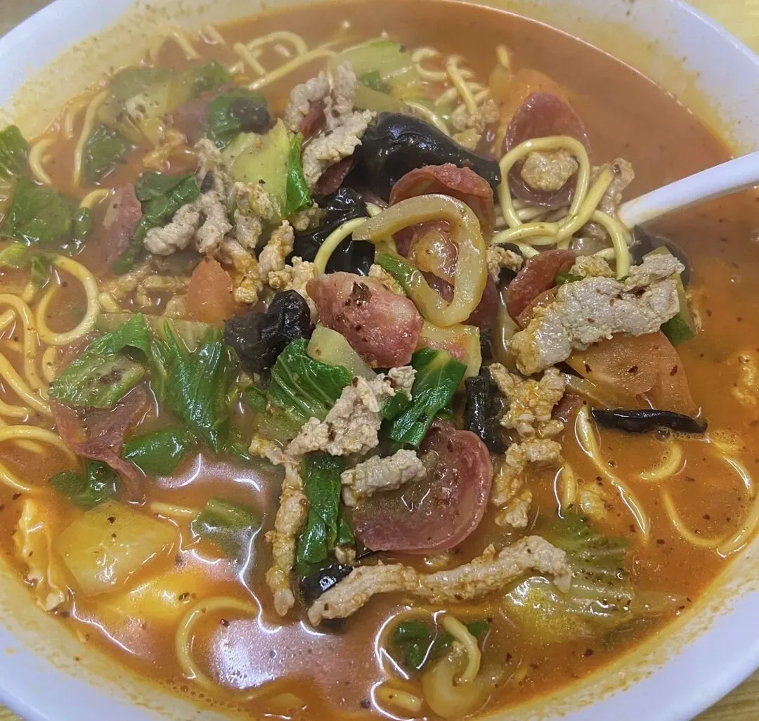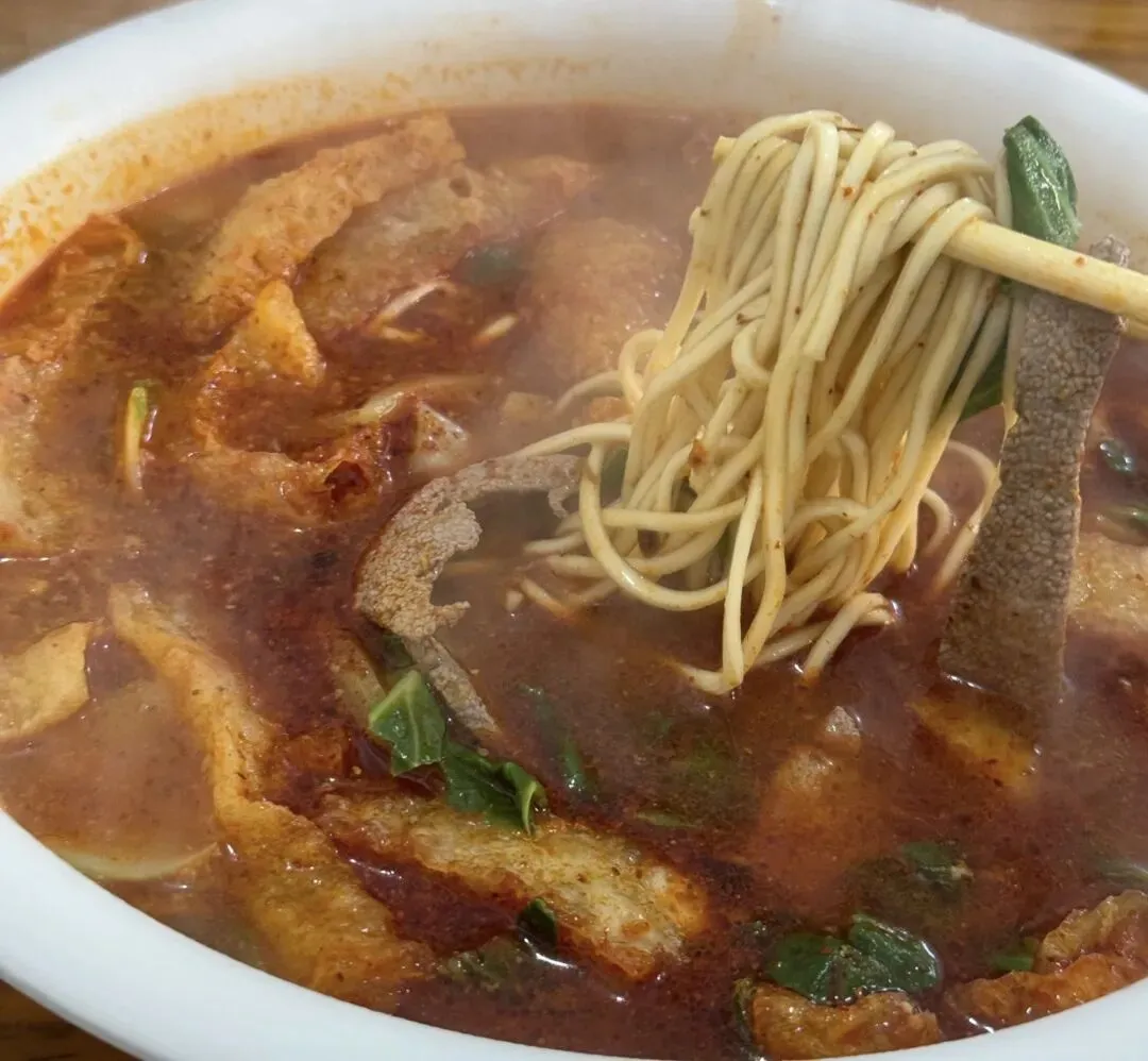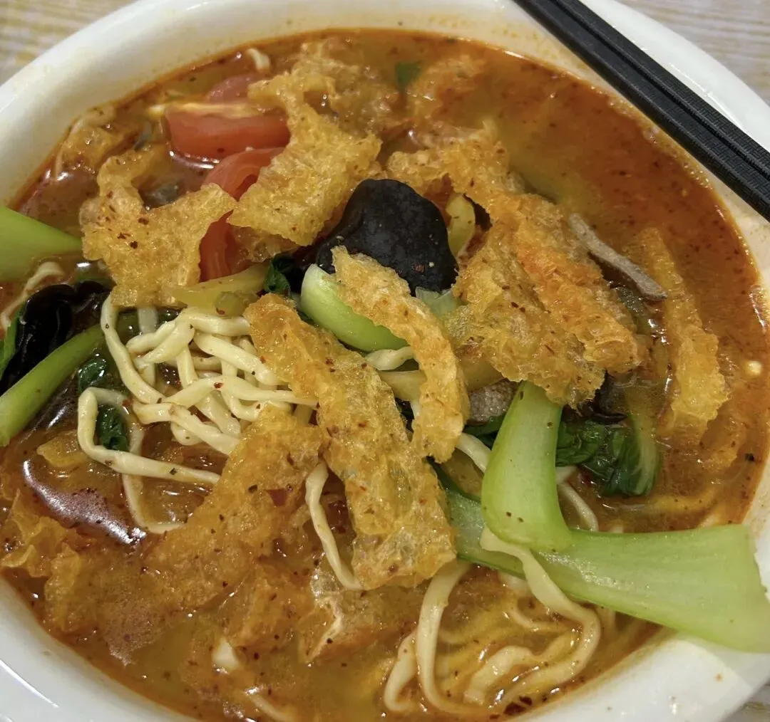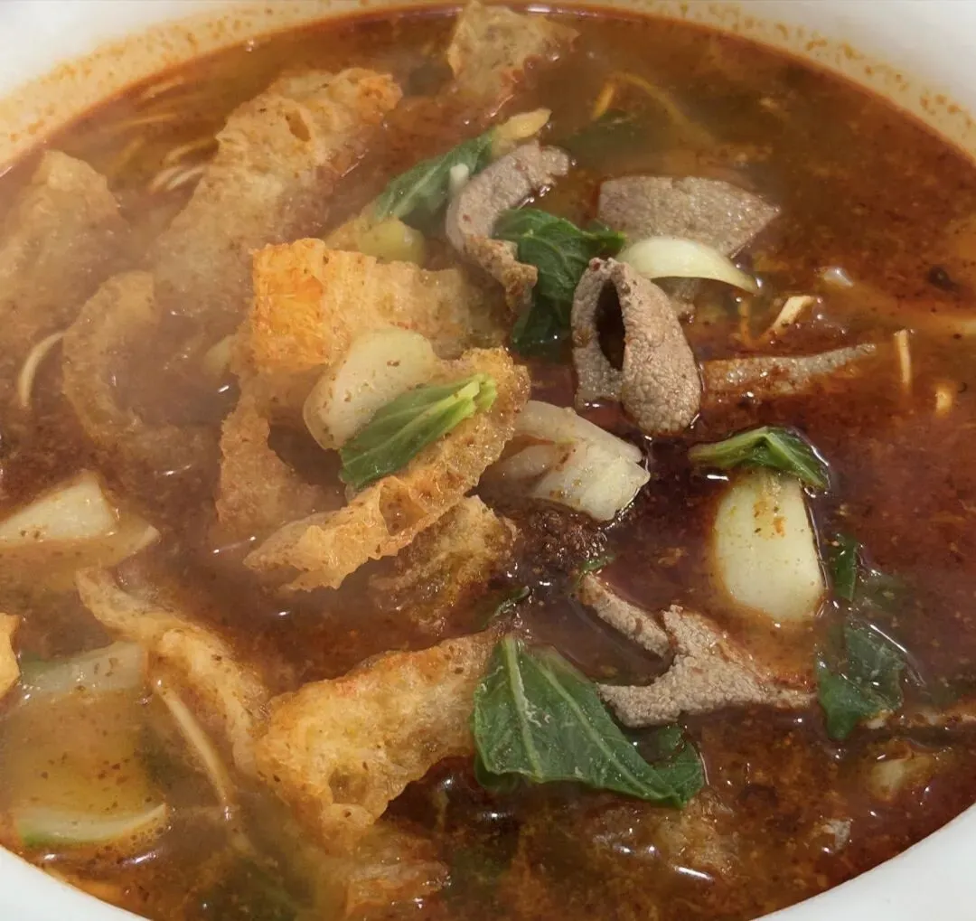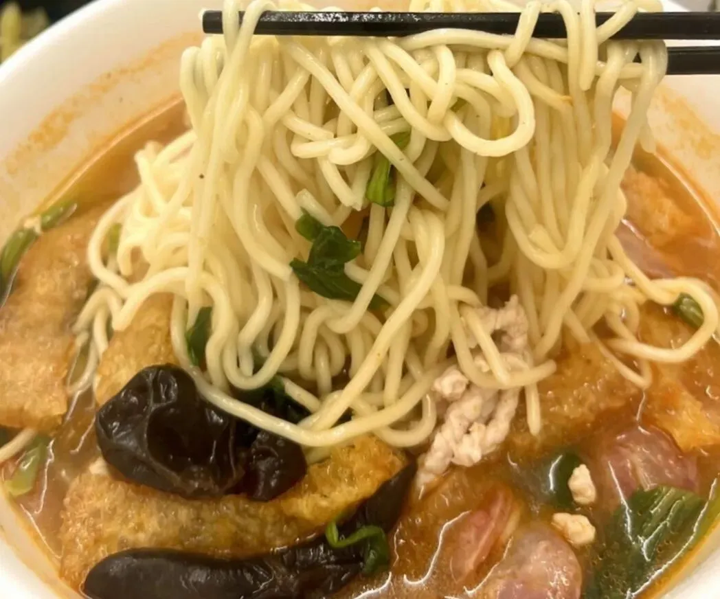 皮肚面是南京的标志性美食,其主角“皮肚”其实就是炸猪皮,炸猪皮在吸饱汤汁后所带来的独特嚼劲和香辣风味,当之无愧地成为人们的心头好,再配以各种不同的食材和面条,吃完一碗皮肚面,瞬间便让人的肚皮变得超级满足和舒服!