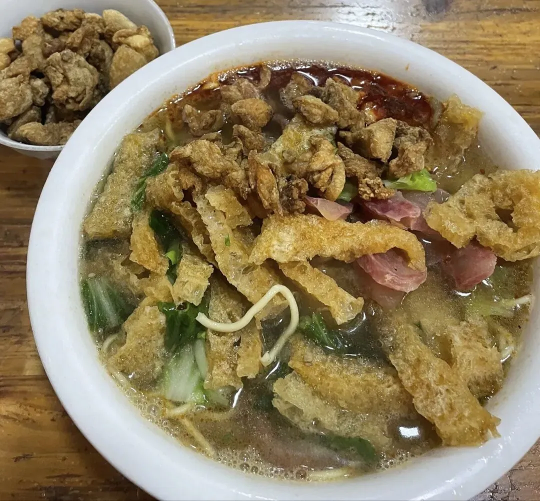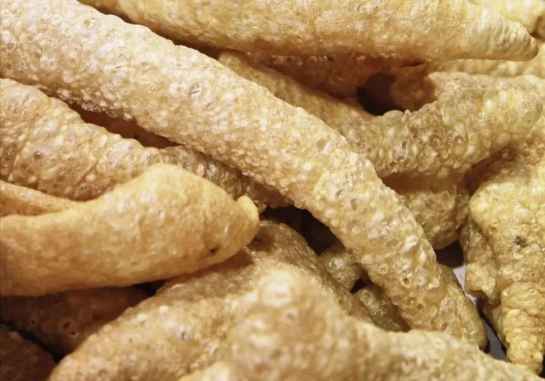 ,就是猪皮经油炸膨化后制成的食材,口感蓬松多孔,能充分吸收汤汁。在南京方言中,它常被称为“肉皮”,是皮肚面的核心浇头,也正是它赋予了汤底更浓郁的鲜香。