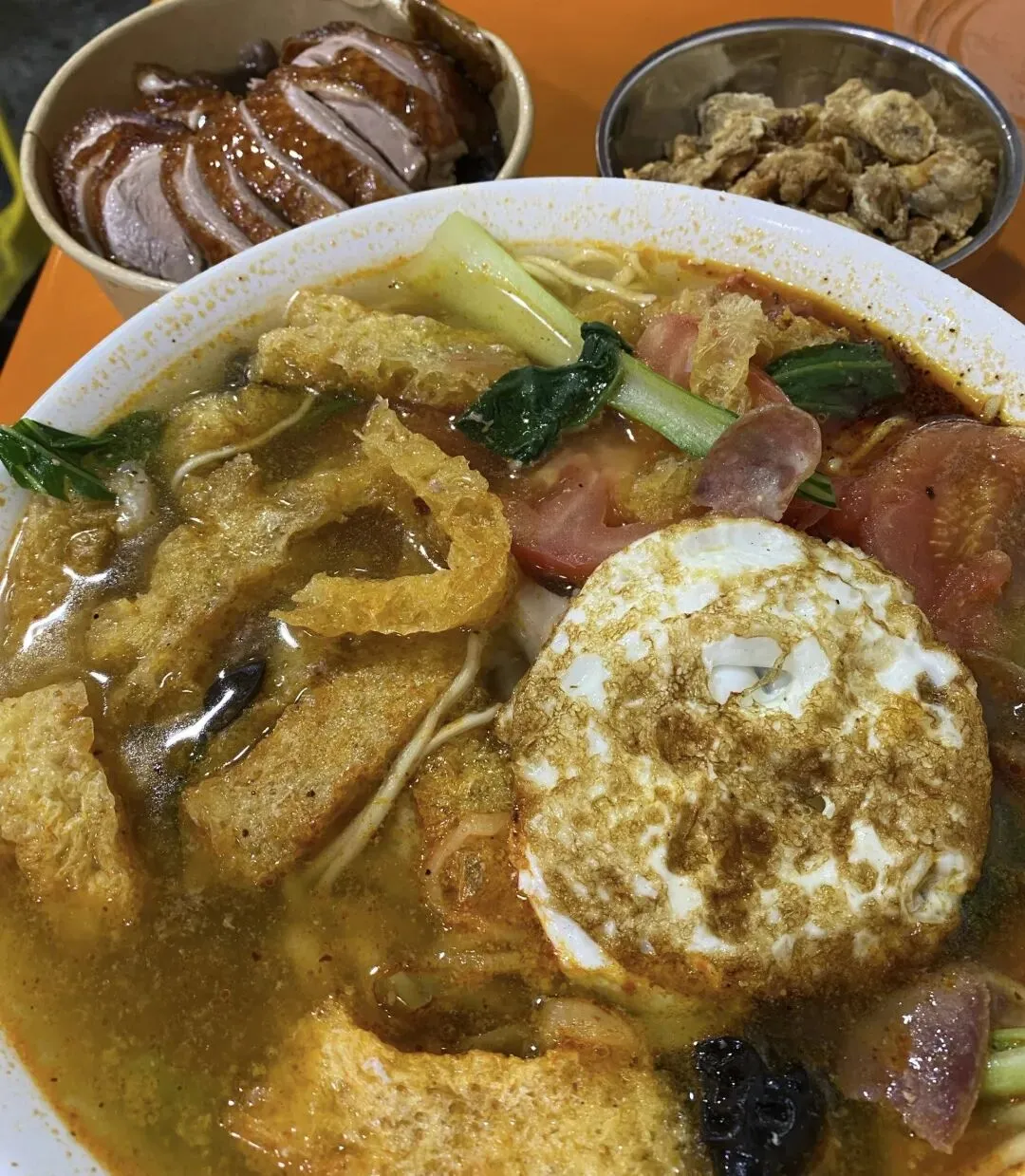,将皮肚面与烤鸭搭配,烤鸭的卤汁咸鲜与面条的香辣互补,光是想想就已经让人口水直流了。