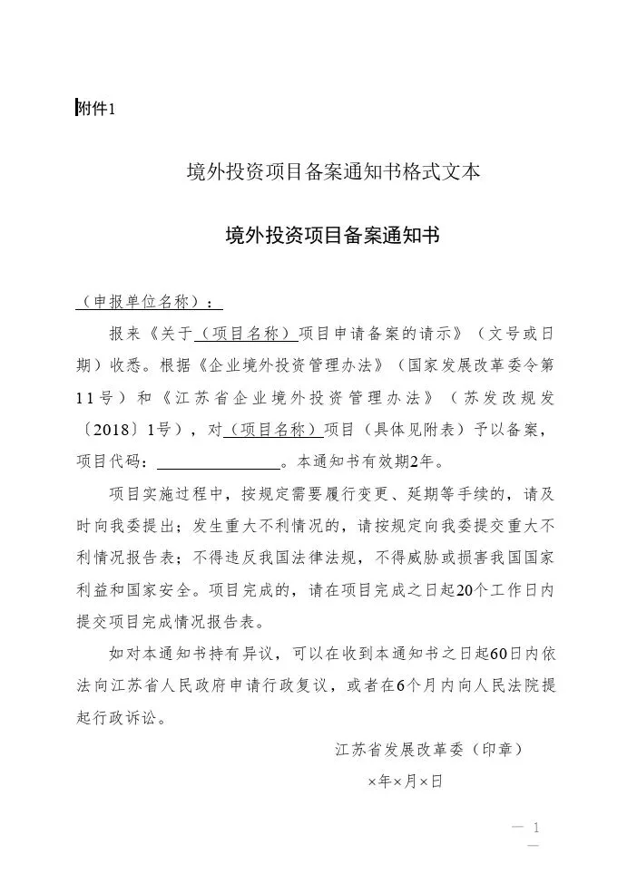 ·发改委立项:根据国家境外相关管理办法条例,低于1亿元美元以下的南京市企业境外投资项目由江苏省南京市发展和改革委员会受理实施审核(线上线下皆可办理)。而投资额度1-3亿元美元的项目需在省发展改革委备案。审核通过后发放核准文件或备案通知书(一般7-10个工作日即可办结)。