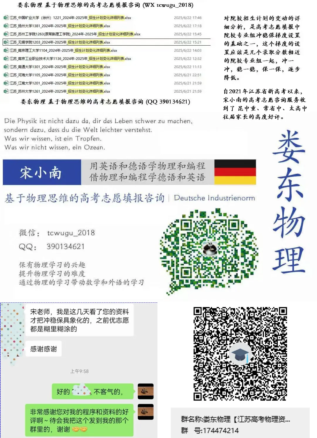 有感于高中物理期中考试     高中的期中物理试卷基本已经公布了,这个卷子会给人一个感觉,就是平常会的题目没有做出来,尤其是高二高三的试卷,不该错的题目会做的题目错的多了那么一点点,分数就直接不及格了。这还是平常的期中考试,若是到了高考的考场上,比谁失误少的高考考场上,一紧张,分数会不会还要少一些呢? 这里有一个重要的问题,一个是可能平时的物理题做得不多,一个是对出现的问题没有归纳总结,对难一些的选择题的选项浅尝辄止,选对了就可以了,对其中不确定的选项没有去弄懂,这样后来的试题情境少有变化,就又错了。 还有一个,就是平常做题目的时候没有一个紧张有序的感觉,没有把平常的作业时间当做高考时间去模拟。 高考物理的时间只有75分钟,分到一个选择题的时间只有2.5到3分钟左右,难一点的一两个选择题也不过5分钟,这就要求对基础概念的掌握一定要扎实,对不懂的选项一定要弄懂,这才是做这个题目的价值。在这个基础上,才有所谓的做选择题等的技巧。 之前我有收集各省尤其是江苏省各地市的模拟卷给朋友家的孩子,如果能从高一坚持到高三,应该不会在选择题的方面吃大亏。 天下武功,唯快不破,高一的时候这个选择题可能要5分钟,高二4分钟, 高三3分钟,台上一分钟,台下十年功,自己比自己有所进步就好了。 每天进步一点点,千万不要还没走进高考的考场,就觉得没有办法和江苏省其它地方的考生竞争,吃的是差不多的饭,喝的是差不多的水,呼吸的是差不多的空气,关键的,就是看平时。 还有一个就是要正确看待物理试卷的难,物理试卷虽然难,但是难得透明,难得清澈,难得公开,难得公平。 最后,谨祝同学们或者朋友们的孩子们,能够在2026年的高考中取得好的成绩。高考只是人生中的一个节点,而后依然需要通过,勤奋的努力,科学的训练,规律的作息,不畏困难的决心,乐观淡定的精神,实现自己的人生梦想。 自2020年12月份以来,我有实时收集整理江苏省新高考各个地市,及新高考其它省份的高三物理模拟试卷,有需要的同学或者家长或可以加QQ联系, 并欢迎提前预约娄东物理宋小南的江苏省高考志愿填报咨询服务,自21年江苏省新高考改革以来,受到了昆中重,常省中,太高中,张家港常青藤中学等家长的高度好评。