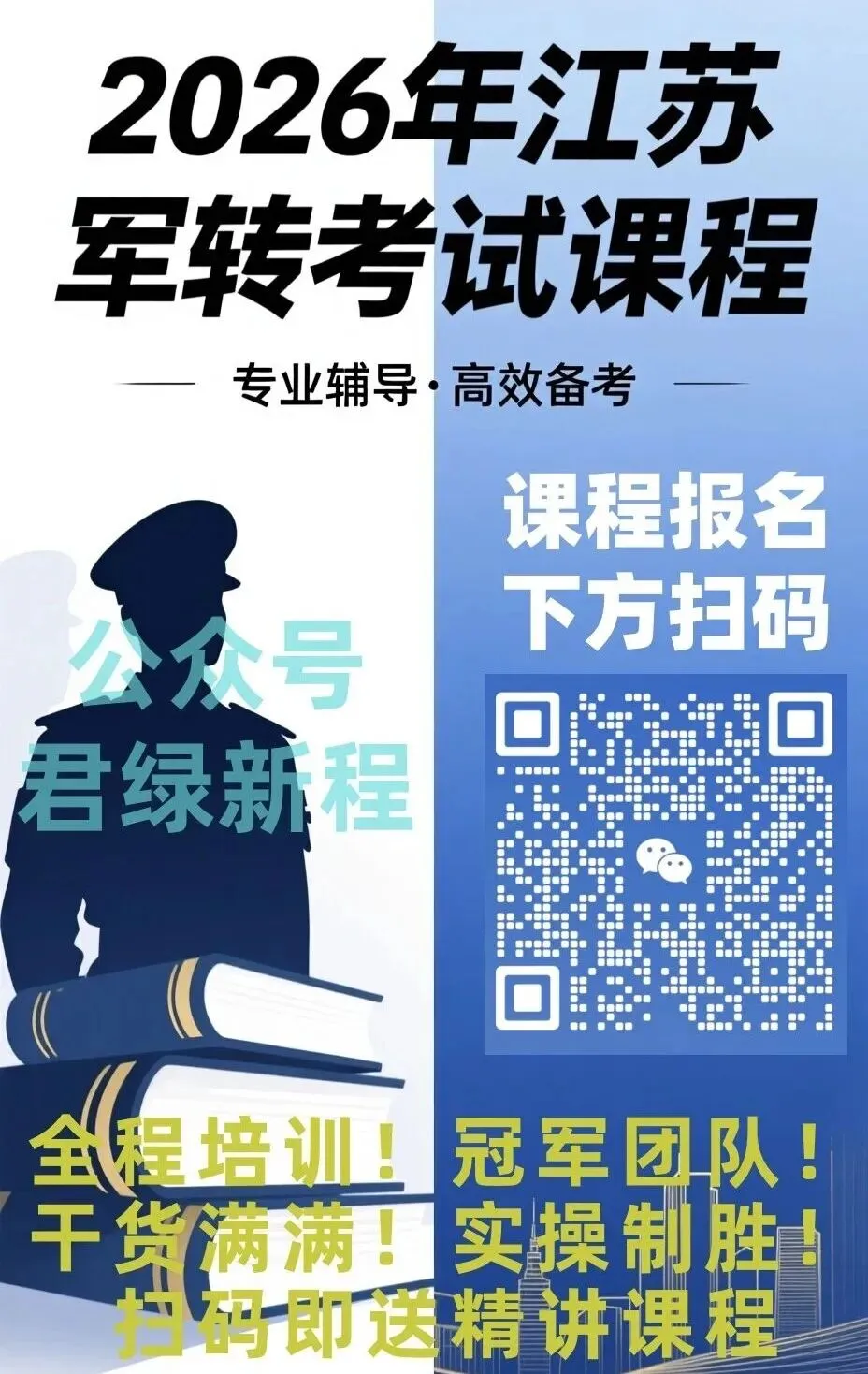目前江苏省《2026年军转考试申论精讲专题课程》全面开课了!重磅开讲!周周直播!上百人已加入,限时早鸟价火热报名中!请直接下方扫码!免费发送两小时精讲公开课,精彩不容错过!