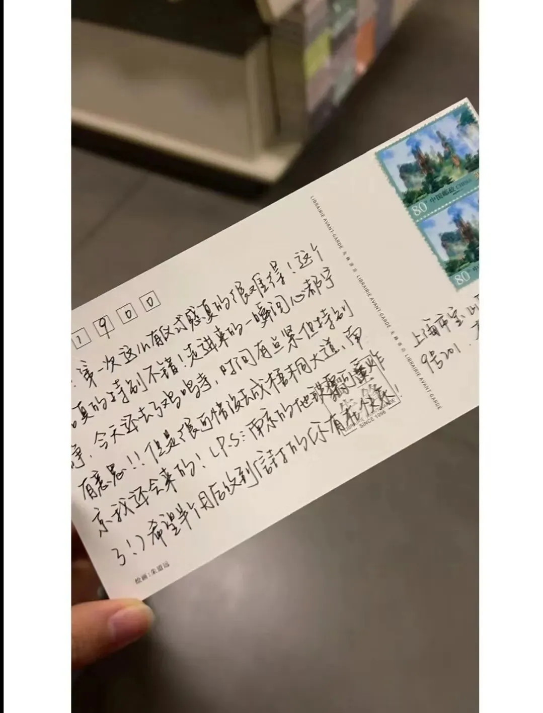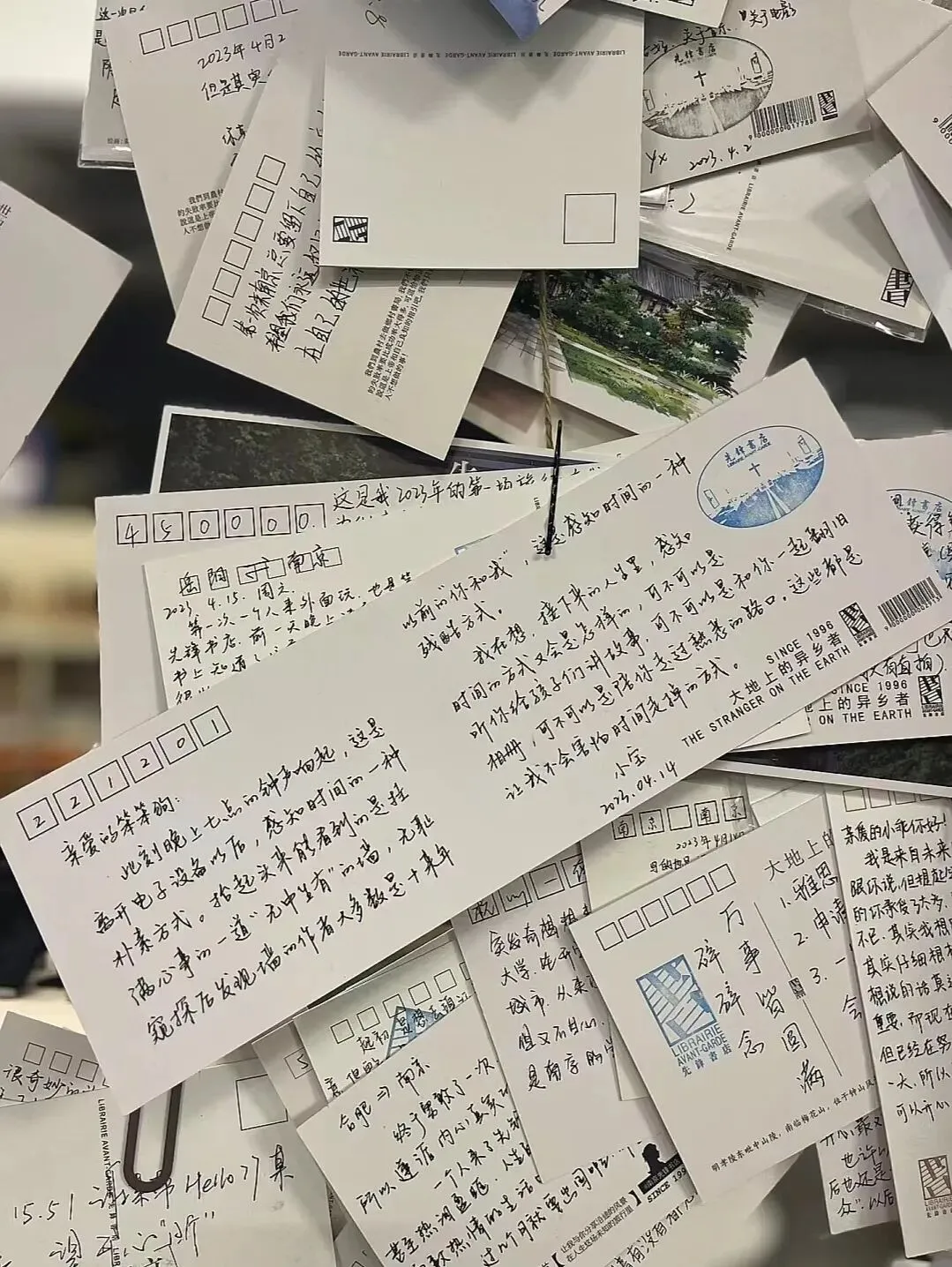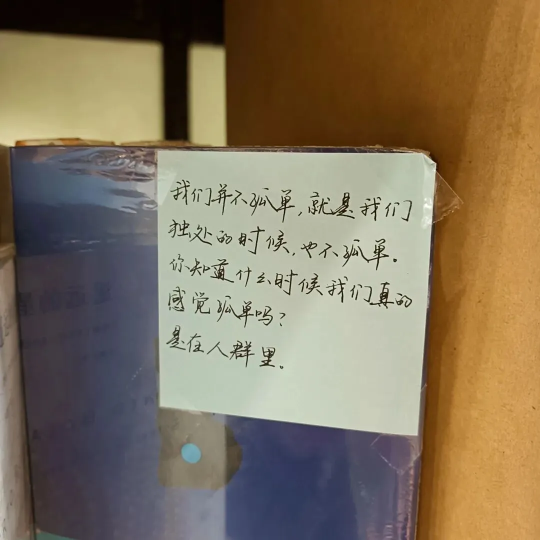 在书店的明信片墙上,每张明信片都是来往的读者留下的故事。看一张张明信片,仿佛在与朋友对话。文字是最能让人共情的。