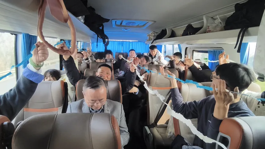 清晨六点,晨光染亮天际,集合点早已热闹非凡。没有上班的匆忙,只有伙伴们的期待:窗外晨晖逐步唤醒田间新绿,大巴车沿着一片片新绿蜿蜒而行。车里游戏不断、笑声不断----小游戏“撕纸比长”在同事立志要把纸“撕成光纤一样细”的豪言壮语中--成了最暖的团建预热。