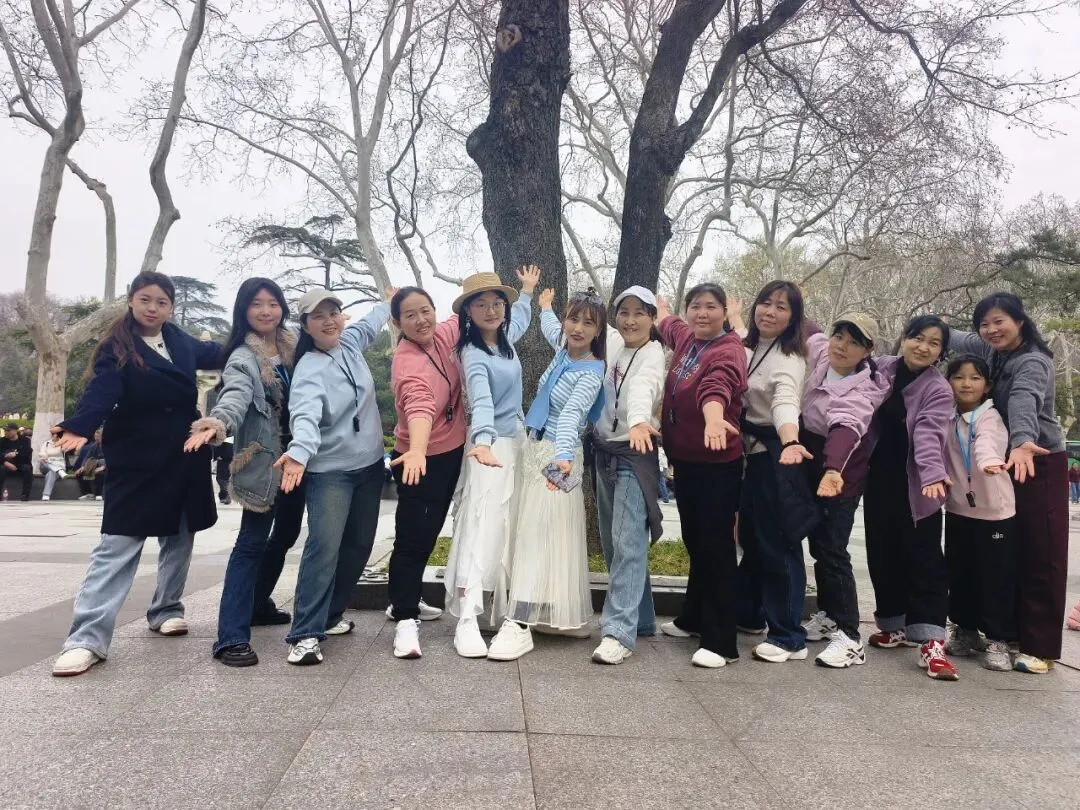 次日清晨,我们迎着朝阳漫步梧桐大道,阳光透过枝叶洒下斑驳光影,快门声与笑声交织,定格春日美好。随后径直前往中山陵,行至博爱坊,大家整齐列队拍集体照,定格同心瞬间。
