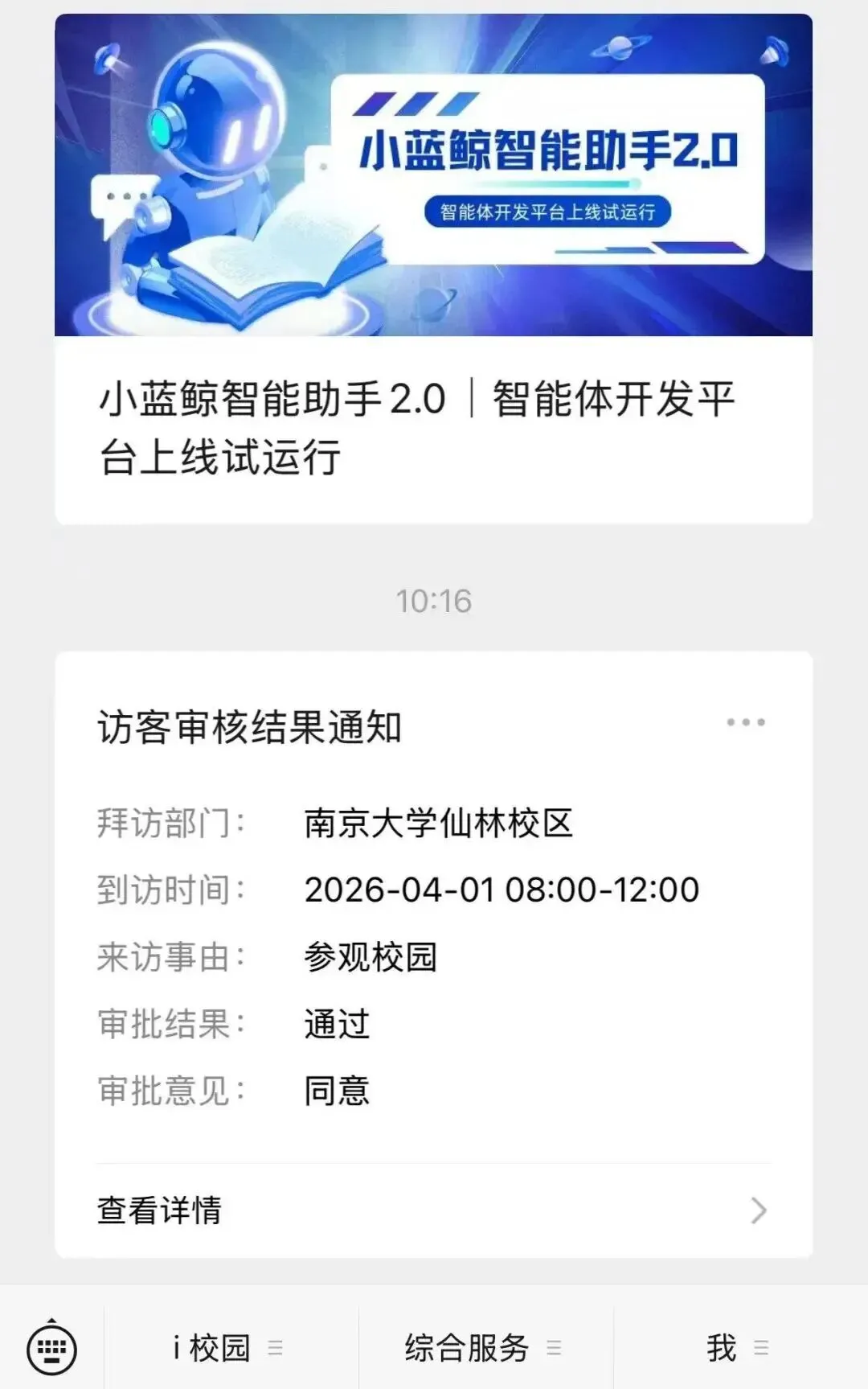 您会收到“访客审核结果通知”