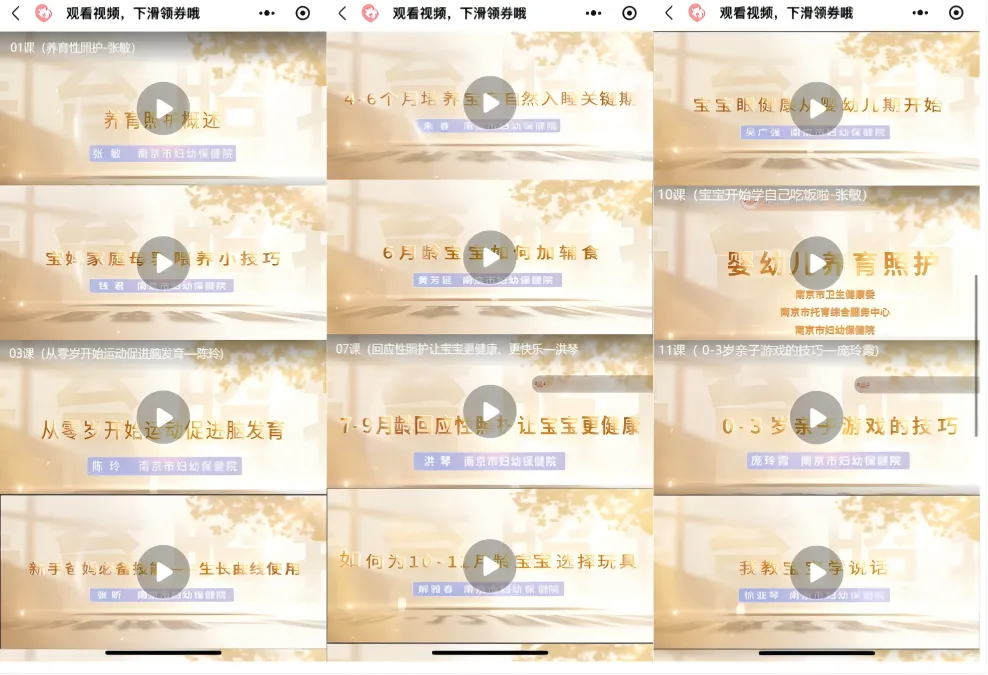 截至2026年3月24日,由南京市卫健委牵头的南京市养育照护大礼包: