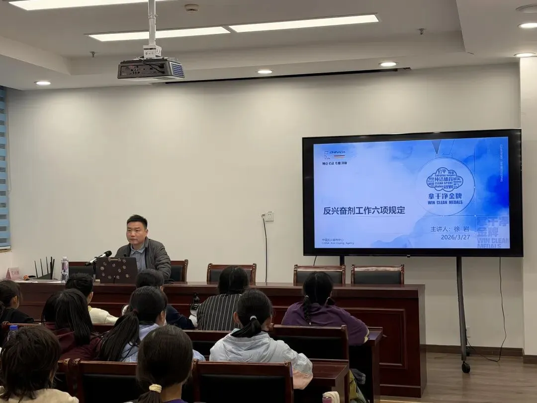 为进一步强化运动员、教练员及辅助人员的反兴奋剂意识,压实“拿干净金牌”的责任担当,筑牢江苏省第二十一届运动会参赛安全防线,3月27日下午,南京市龙江体育运动学校成功组织开展反兴奋剂准入教育暨宣誓活动,以专业宣讲筑牢思想根基,以庄严承诺践行体育初心。