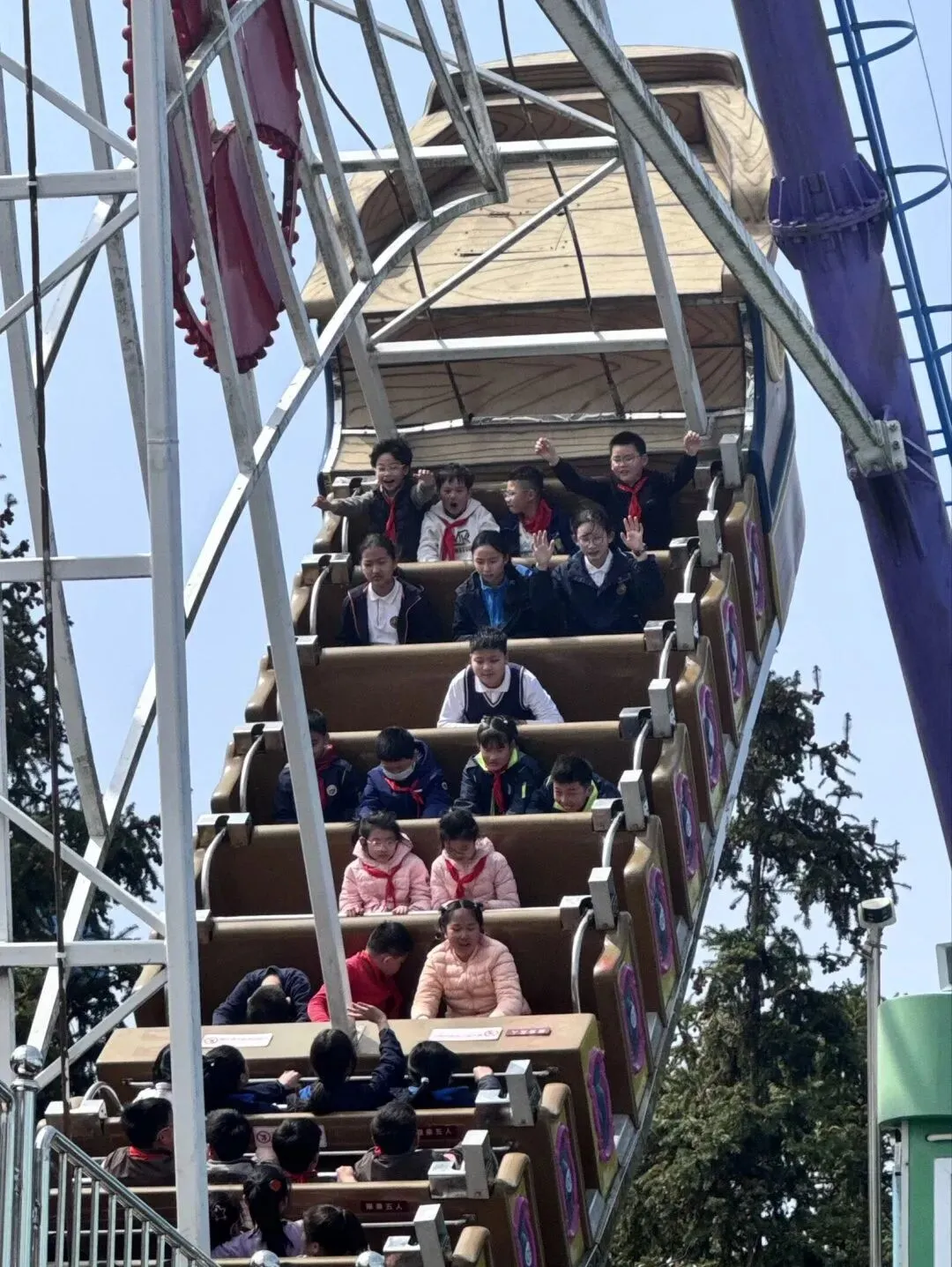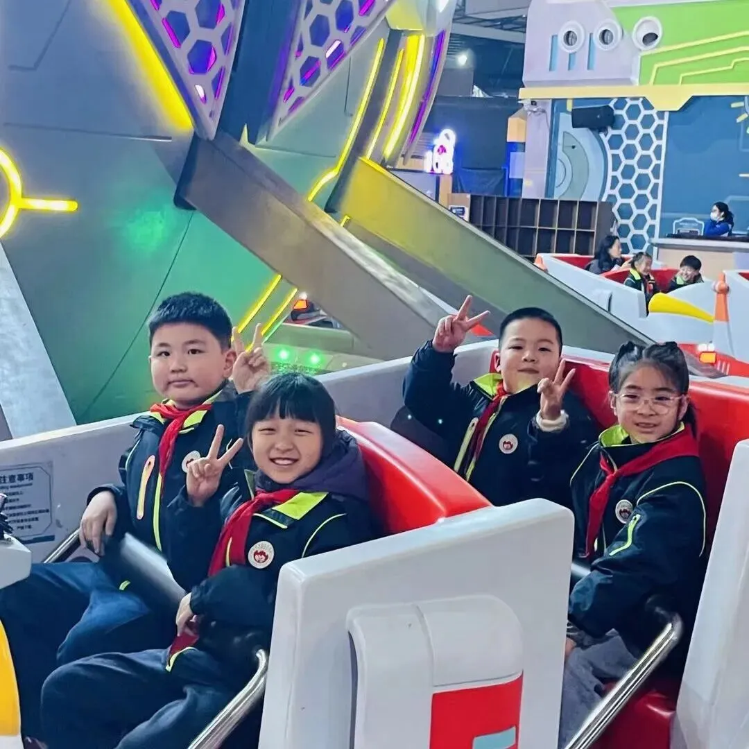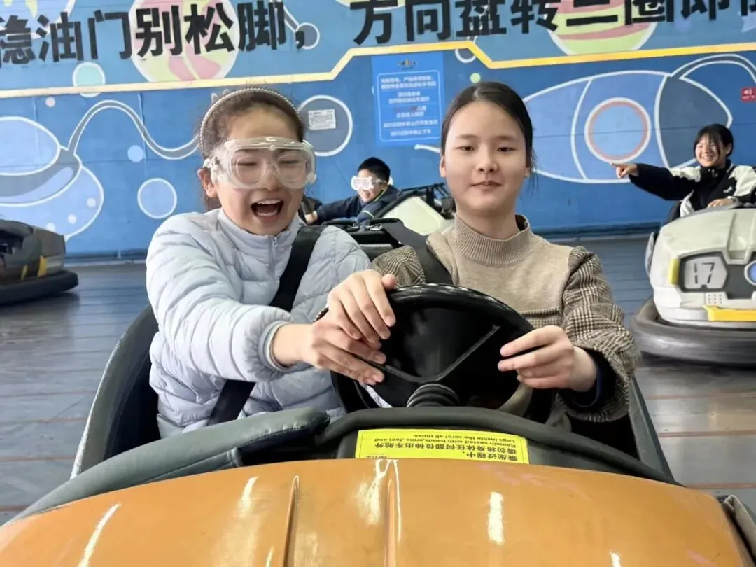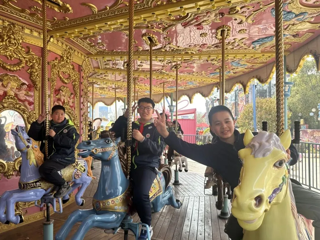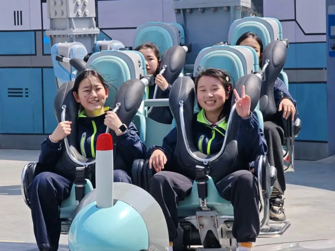 步入欢乐谷,明快的乐曲萦绕耳畔,斑斓的建筑错落有致。旋转飞椅迎风而起,少年们从容舒展,俯瞰春日盛景;旋转木马缓缓转动,载着六年的童真回忆,温柔又治愈;碰碰车场上,欢声笑语依旧,却多了几分默契的包容。不同于往日的肆意撒欢,六年级的学子们从容体验、有序参与,在欢乐中释放压力,在陪伴中珍藏情谊。