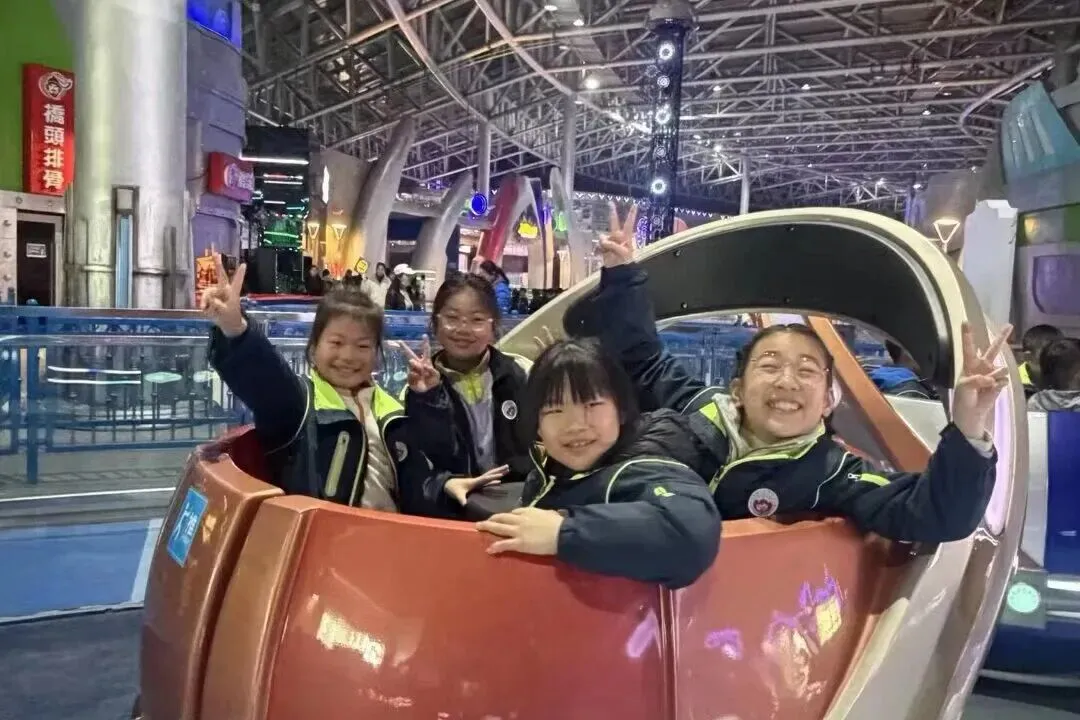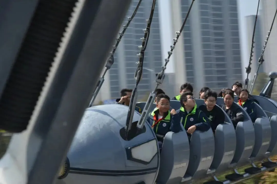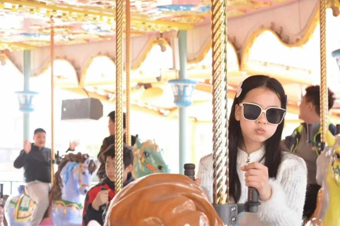 孩子们有序体验了多个特色项目:四十多米高的观景摩天轮缓缓转动,登高远眺,银杏湖山水风光尽收眼底,尽感春日开阔;安徒生童话馆内,经典场景鲜活逼真,童话巡游热闹非凡,《卖火柴的小女孩》片段演绎,让孩子们沉浸式感悟温暖与真善美;双层旋转木马载着童年梦想,青花咖啡杯造型别致,海盗船跌宕起伏,孩子们尖叫欢呼、尽情释放;恐龙化石馆里,孩子们认真观察、积极提问,在欢乐中解锁恐龙知识、拓宽视野。