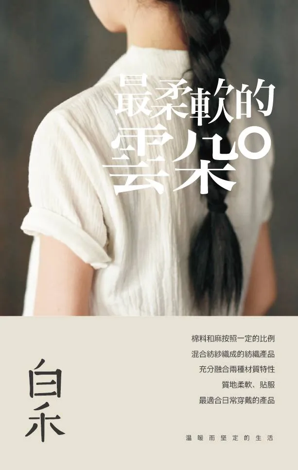 白禾,2015年诞生于台北旧市场咖啡馆的一次小聚,是一个由大陆、台湾、新加坡设计师联合全球顶级OEM织造企业共同打造的生活方式品牌。白禾主张回归生活本质,希望通过简单设计、天然材质和环保工艺创建一份适应现代都市的完整生活提案。产品线涵盖家居服、床品、个人护理和生活杂货。在甄选产品的过程中,白禾产品团队着重考虑的是这件产品能不能给使用者带来温暖而坚定的感觉。设计、面料和工艺都以此为衡量标准,务求做到实用舒适并且足够安全。从无到有的这些个日子里,因为有你们的陪伴,我们走的分外坚定。我们有最朴素的生活,和最遥远的梦想,让时间见证每一个难忘的瞬间,温暖而又坚定。未来白禾将坚守天然、健康、环保的核心价值,提供围绕衣食住行的全方位的生活提案。白禾,2015年诞生于台北旧市场咖啡馆的一次小聚,是一个由大陆、台湾、新加坡设计师联合全球顶级OEM织造企业共同打造的生活方式品牌。品牌主理团队主张回归生活本质,希望通过简单设计、天然材质和环保工艺创建一份适应现代都市的完整生活提案。产品线涵盖家居服、床品、个人护理和生活杂货。