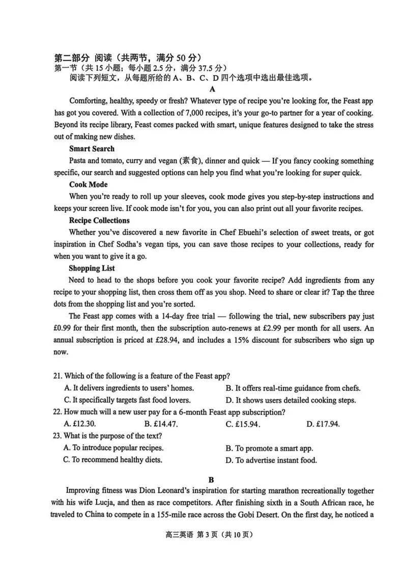 这套南京市、盐城市2026届高三一模英语试题整体难度中等偏上,贴近高考命题思路,注重综合语言运用能力的考查。