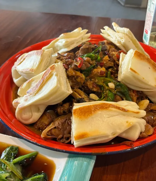 邳州的胃,是被烟火养大的。早上是蒜香小笼,汤热得冒泡,皮薄,咬开时汁水直往嘴里冲,一下子暖透。中午一碗地锅鸡,锅边那圈饼是灵魂,外层脆,里层浸着汤汁,一撕一口,全是麦香。晚上,街口那家烤串摊要排队,羊肝切得薄,撒盐轻,啤酒一碰就起雾。