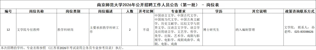 南京师范大学2026年公开招聘工作人员公告(第一批)-岗位表.xlsx