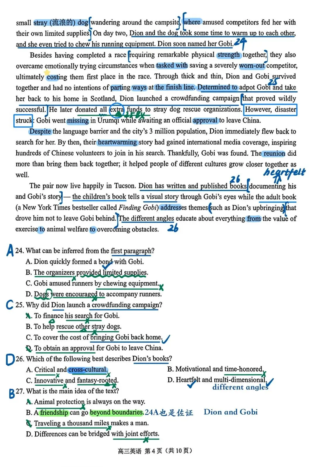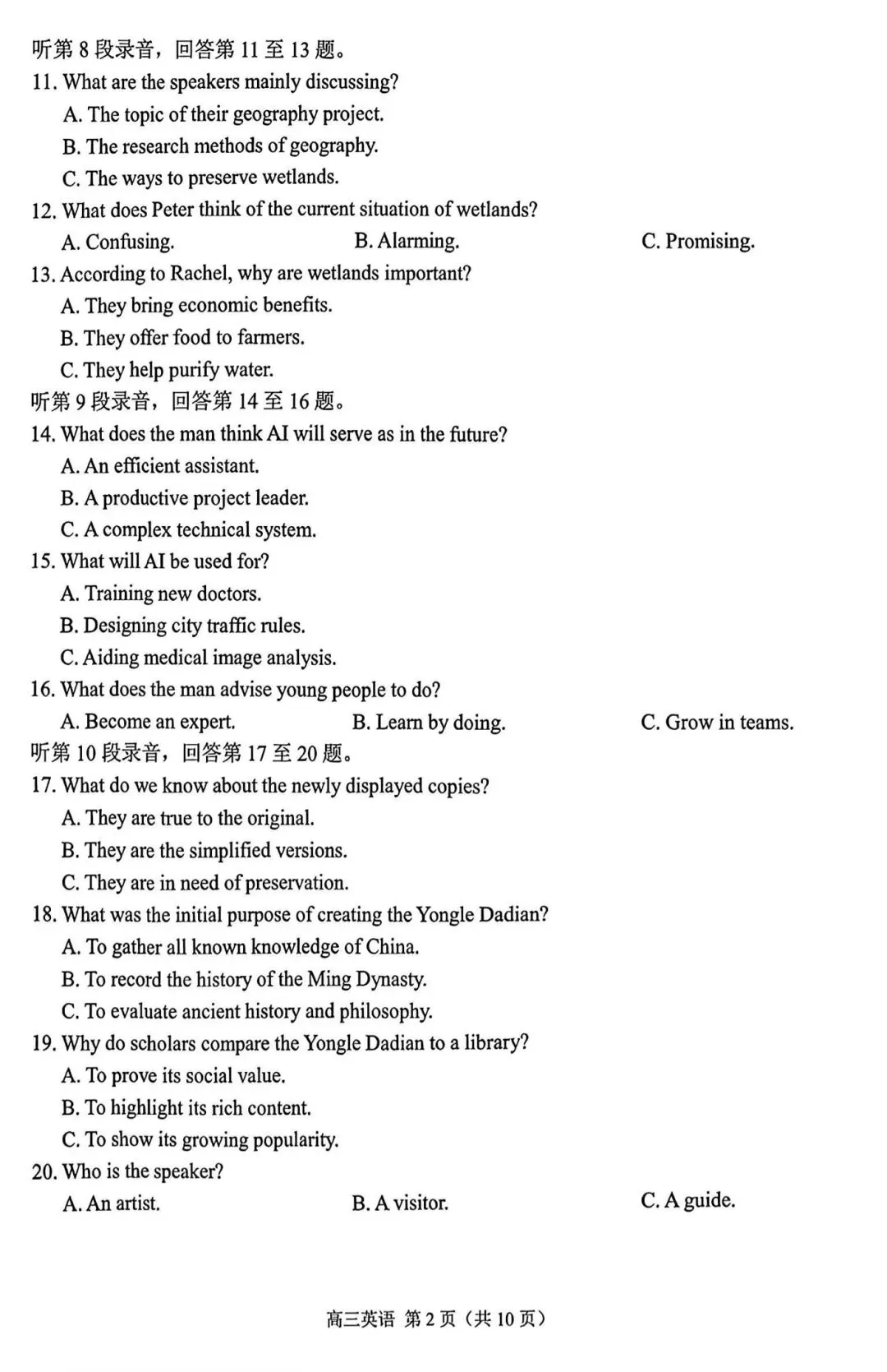 这套题整体上出得不错,质量挺高,B篇是去年苏州高二下期末完形考过的故事,C篇与今年济宁一模相似,七选五、完形和语填质量都属上乘,选材都很好。(语填的阿者科计划由中大保继刚教授牵头)注意C篇的30题,完形填空的46题、49题,语填的61题。35题我做的时候选C,标答选B,大家觉得哪个更合适呢?