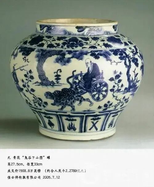 2005 年,元青花 “鬼谷子下山” 大罐在英国佳士得以 2.3 亿元人民币的天价拍出,而与这只梅瓶同款的器物,在 2011 年更是拍出了 8.4 亿港币的高价。有文物专家曾评价,这只藏于南京市博物馆的梅瓶,因其品相完好、流传有序,价值至少十亿人民币。2013 年,它被国家文物局列入《第三批禁止出国(境)展览文物》目录,从此,这尊国宝便留在了国内,静静伫立在博物馆里,向世人诉说着跨越百年的故事。