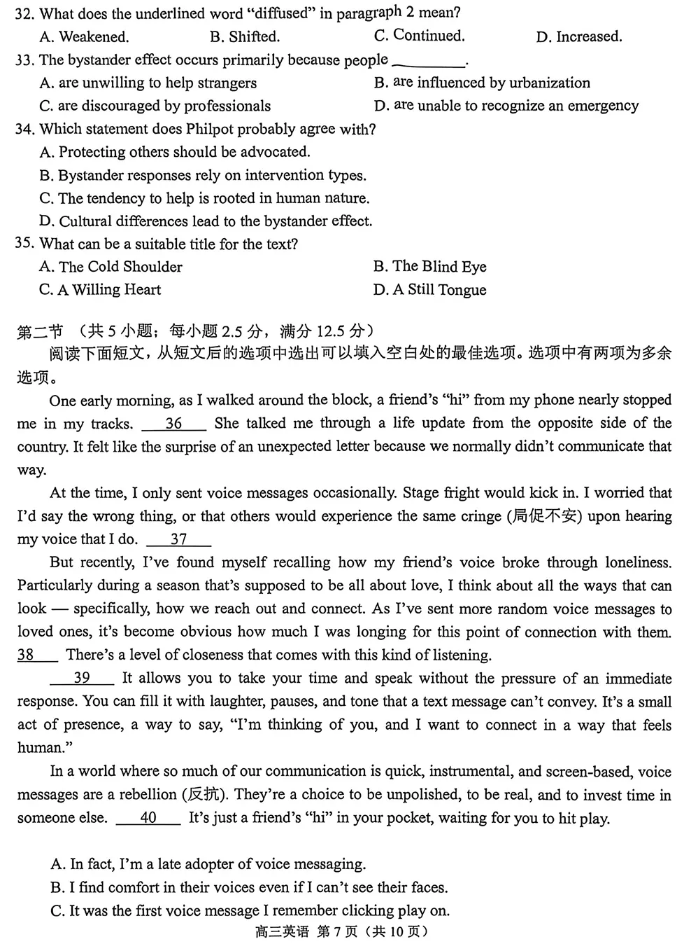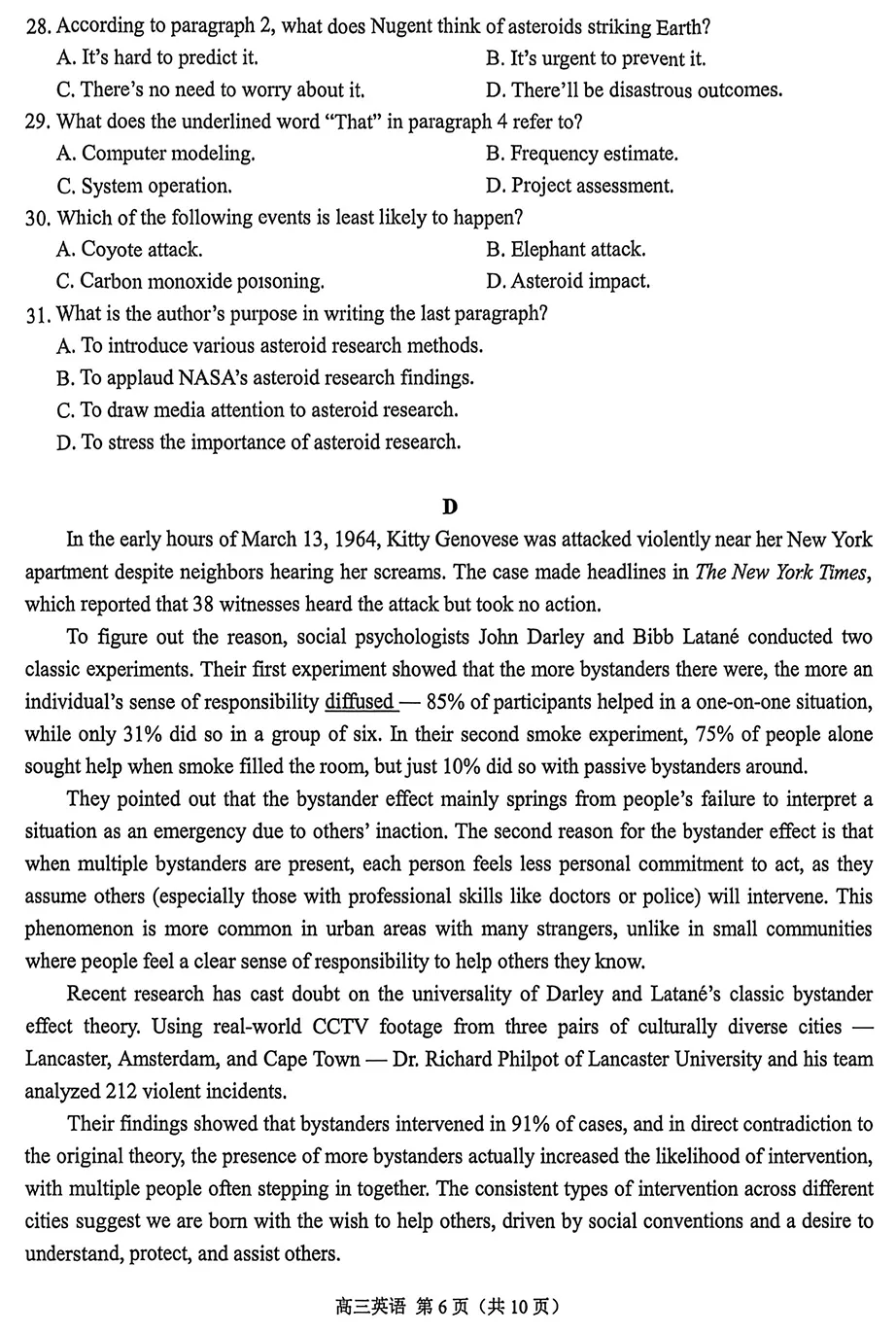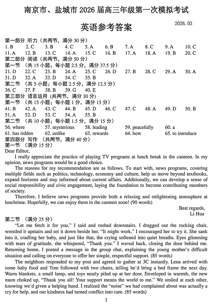 【2025~2026学年度南京+ 盐城 高三教学情况调研 一模 英语)真题 + 答案】