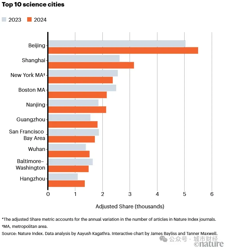 中国首次占据全球科研城市十强榜单一半以上席位。