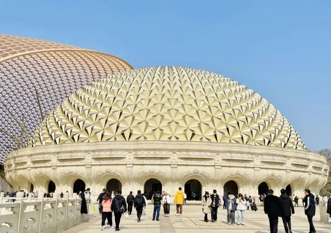 穹顶之下,是层层叠叠的廊柱与拱门,石材的质感沉实厚重,线条简洁而庄严。整个建筑依山势而建,与自然山体相互嵌合,人工的秩序与天然的浑朴在这里达成了一种奇妙的和谐。