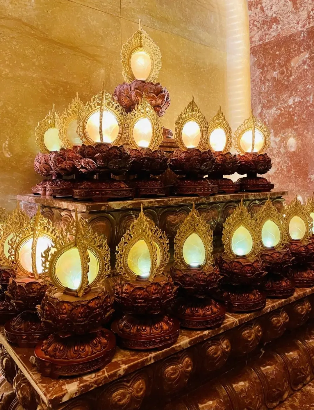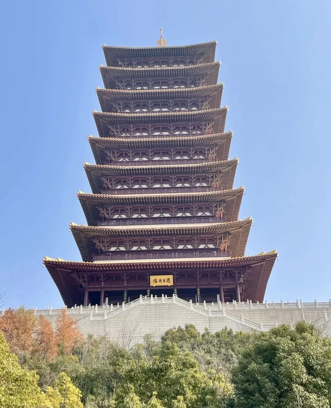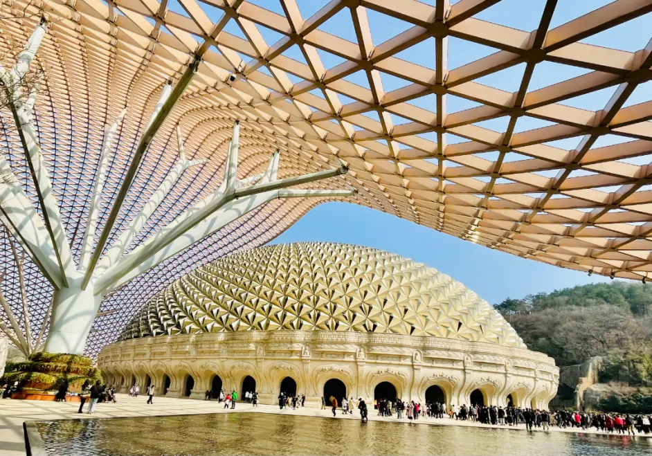 山顶之上,佛顶宫的建筑群便映入眼帘。巨大的穹顶呈半圆形覆于山巅,金色的表面在日光下泛着温润的光泽,并不刺目,倒像是从山体里生长出来的一般。
