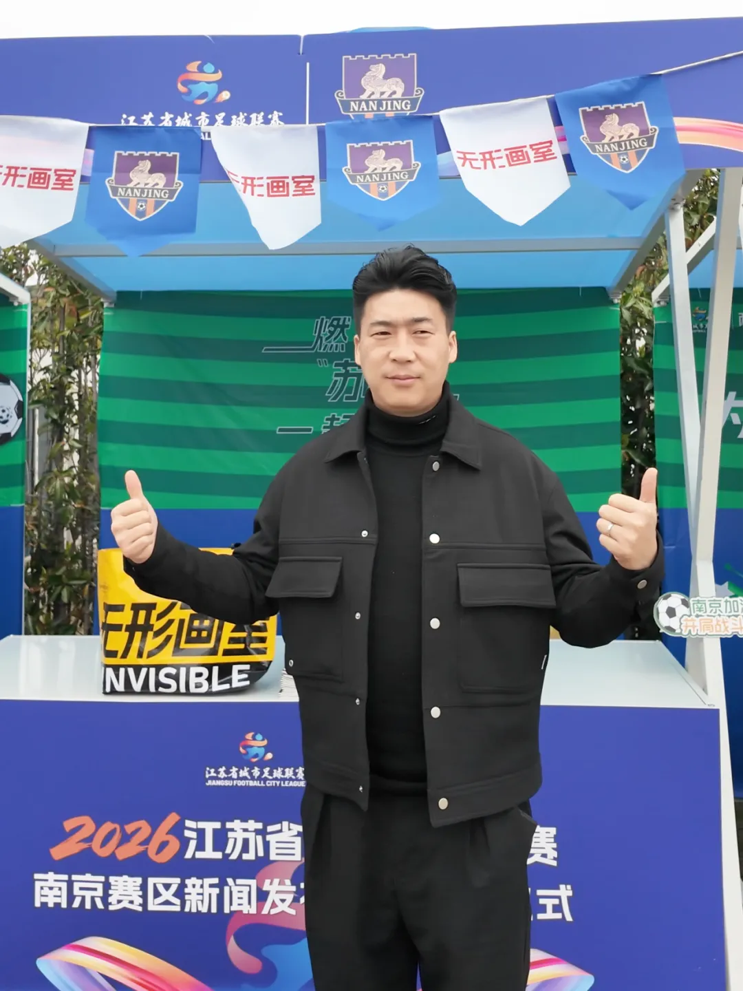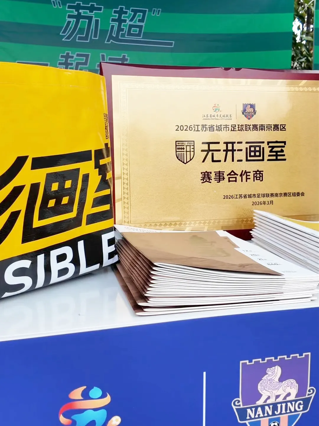 3月26日,金陵STYLE浪漫中心草坪上战鼓雷鸣,号角嘹亮。2026江苏省城市足球联赛(简称“苏超”)南京赛区新闻发布会暨出征仪式隆重举行。无形画室作为2026“苏超”南京赛区赛事合作商,与南京证券、今世缘、海之蓝、苏银理财等知名企业共同亮相,正式开启了艺术教育与城市足球的跨界合作之旅。