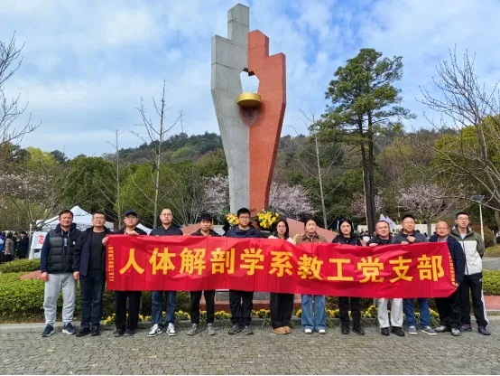 在2026年清明节来临之际,一场神圣而庄严的追思活动如约而至。3月27日,由南京市红十字会组织的“捐友”感恩悼念活动,在“南京市遗体器官捐献者纪念林”隆重举行。今年的活动主题为《沐手敬书,生命的淡香》。南京医科大学基础医学院党委副书记、副院长段振东,教务处副处长、人体解剖学系主任张永杰带领学院人体解剖学系教师及本科生、研究生代表参加了本次缅怀活动。