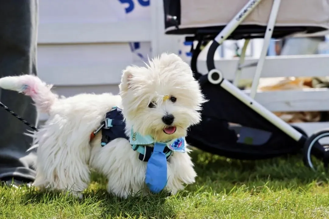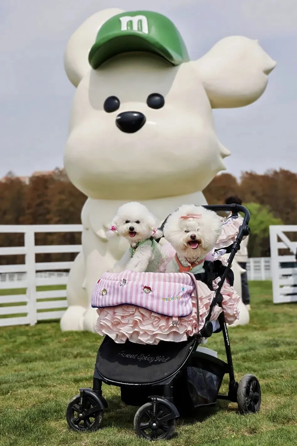 还有的穿着漂亮小裙子、带着绅士小领结,乖乖躺在婴儿车里,每个路过的人都要摸一把,脑门都要盘包浆了。