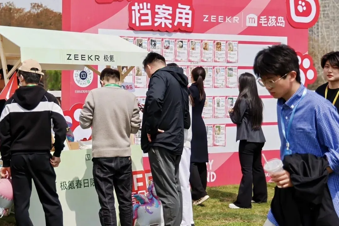 还有萌宠交友区,一本正经地帮毛孩子们“牵线搭桥”。现场挂满了宠物“档案”,年龄、品种、性格一应俱全,家长们加起微信来,一点不比玄武湖公园差。