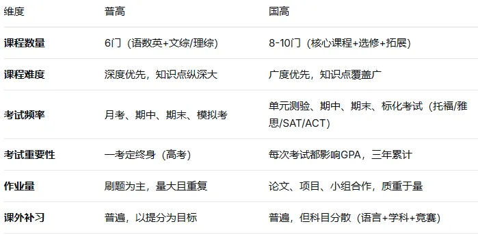 ✅ 适合普高:抗压强、专注单线程、预算有限的“做题家”✅ 适合国际:英语强、自律性MAX、家庭年收入50万+的“六边形战士”