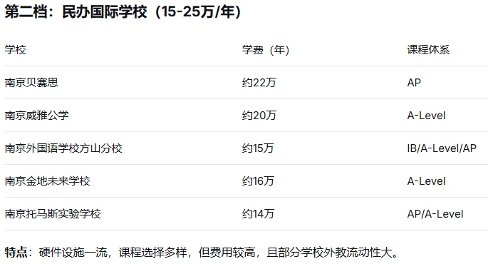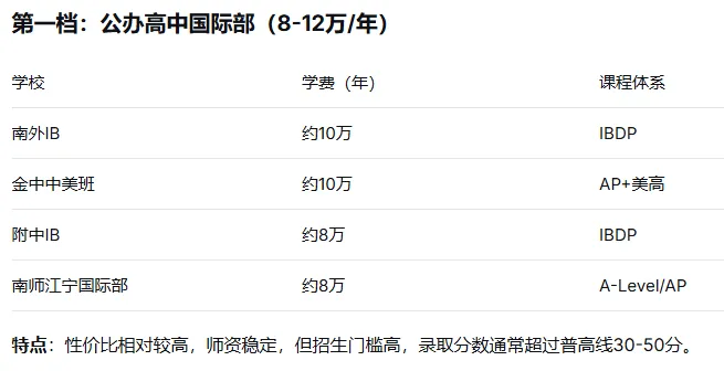 南京主流国际高中/国际部的学费分为两档: