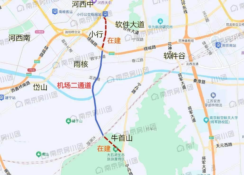 ,起于小行立交,途径数字大道、牛首山,终到机场西大门(规划),
