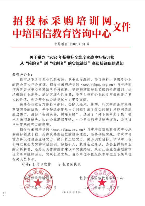 >4月23日深圳/5月28日南京 举办“2026年招投标全维度实战中标特训营从“陪跑者”到“收割者”的实战进阶”高级培训班的通知