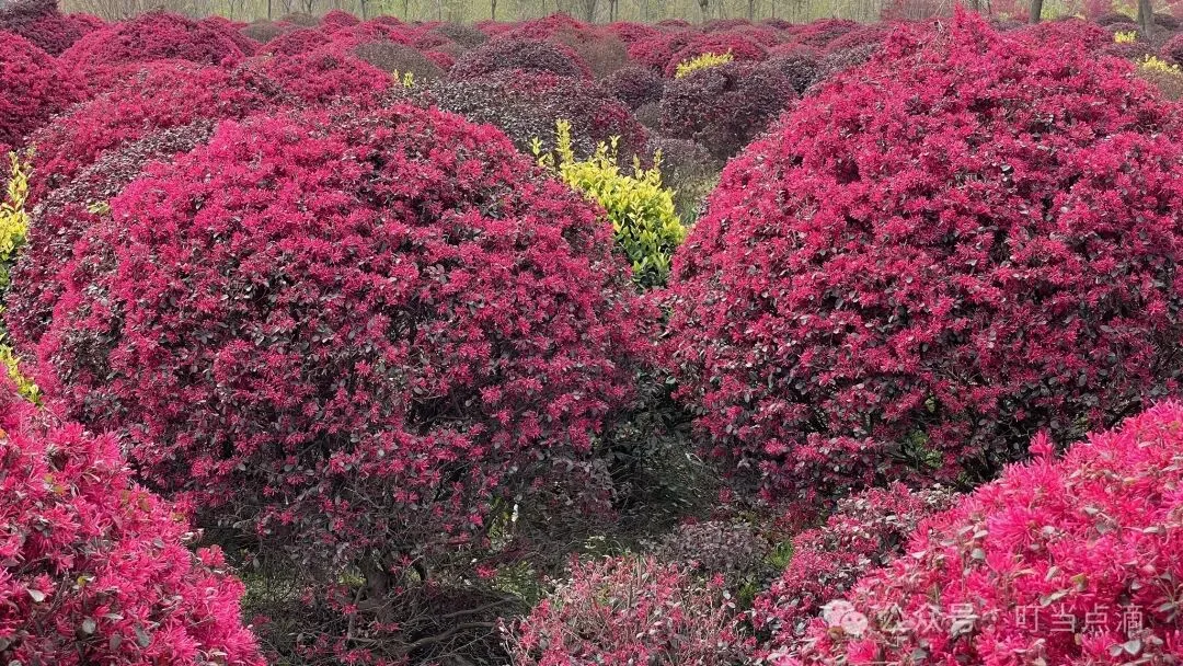 风起时万顷柔波次第翻卷,暗香浮沉沾衣欲湿。游者或驻足拈花,或逐蝶浅笑,皆成这流动霓裳上的鲜活纹样。金黄花浪叠作千重云锦,浅粉柔瓣若揉碎胭脂点染枝头,素白花簇如星子缀落碧玉盘,更有绛紫、橘红等异色杂糅其间,恍若天孙织女失手打翻七彩丝线。远眺处花潮接天奔涌,近观时四瓣玲珑如蝶翼轻颤,暗合白乐天“乱花渐欲迷人眼”的纷繁意象,却比诗中更添三分秾丽。日头西斜,彩云坠入花蹊,天地间蒸腾起琥珀色的光霭,教人顿生“直欲买花同载酒,终不似,少年游”的缱绻。 远处这处民宿直面花田,这里油菜花田众多,除了惊艳的彩色油菜花田,也有传统花田,其间点缀各种小品,更添浪漫氛围。 油菜花田的种植者还贴心地建了高塔供登高俯瞰四野的油菜花海,另外还有公共电单车,骑车在花海中御风而行,必定是一种独特的体验。 桥头这株棠梨拍人像特别出彩,棠梨下有块方正的景石,站在上面,正够得上缀满繁花的枝头,背景是小桥流水,远处的花田村舍。 南京自驾前往多彩油菜花海,百度导航“稻田理想 常州市新北区”约107公里,65分钟。不过这个景区我们其实是临时安排的,原本是去新北区奔牛镇观赏海棠花的,没成想小视频上看的海棠花海一望无垠的粉色海洋,到了现场如果没有无人机就毫无意义。 这里的海棠种植面积虽然很大,但杂乱无章,看上去似乎无人管理,属于野蛮生长。整个海棠林处在平地,地势毫无起伏,周边又没有制高点,面积再大也只能窥其一角。 我们从南京自驾海棠花海,百度导航“武进区何家小学 常州市新北区”约113公里80分钟,从海棠林到彩色油菜花海14公里约27分钟。如果不是无人机航拍全景,那就没必要专门跑一趟了。 在前往海棠林的路上会路过很多红花檵木种植园,一团一团的红花檵木经过修剪特别可爱,种植在沙地上,看上去有种外星球的即视感。