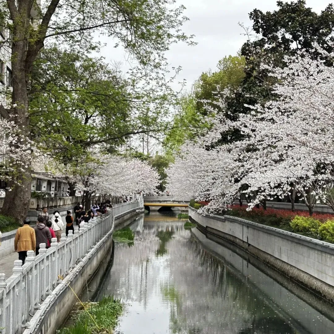 而如今,春天彻底唤醒了这座城。樱花、海棠、郁金香次第盛开,南京彻底变成了花的海洋。鸡鸣寺和珍珠河的樱花如云似霞,粉白花瓣随风飞舞,落满肩头;海棠花开得温婉娇艳,粉嫩的花瓣裹着柔情,装点着街巷庭院;郁金香色彩斑斓,红的热烈、黄的明媚、紫的优雅,一片片花海肆意绽放,像大自然不小心打翻了调色盘,把所有温柔又明艳的色彩,都泼洒在了这座六朝古都里。走在街头,处处繁花似锦,空气里都弥漫着淡淡的花香,脚步不自觉放慢,满心都是治愈与美好。