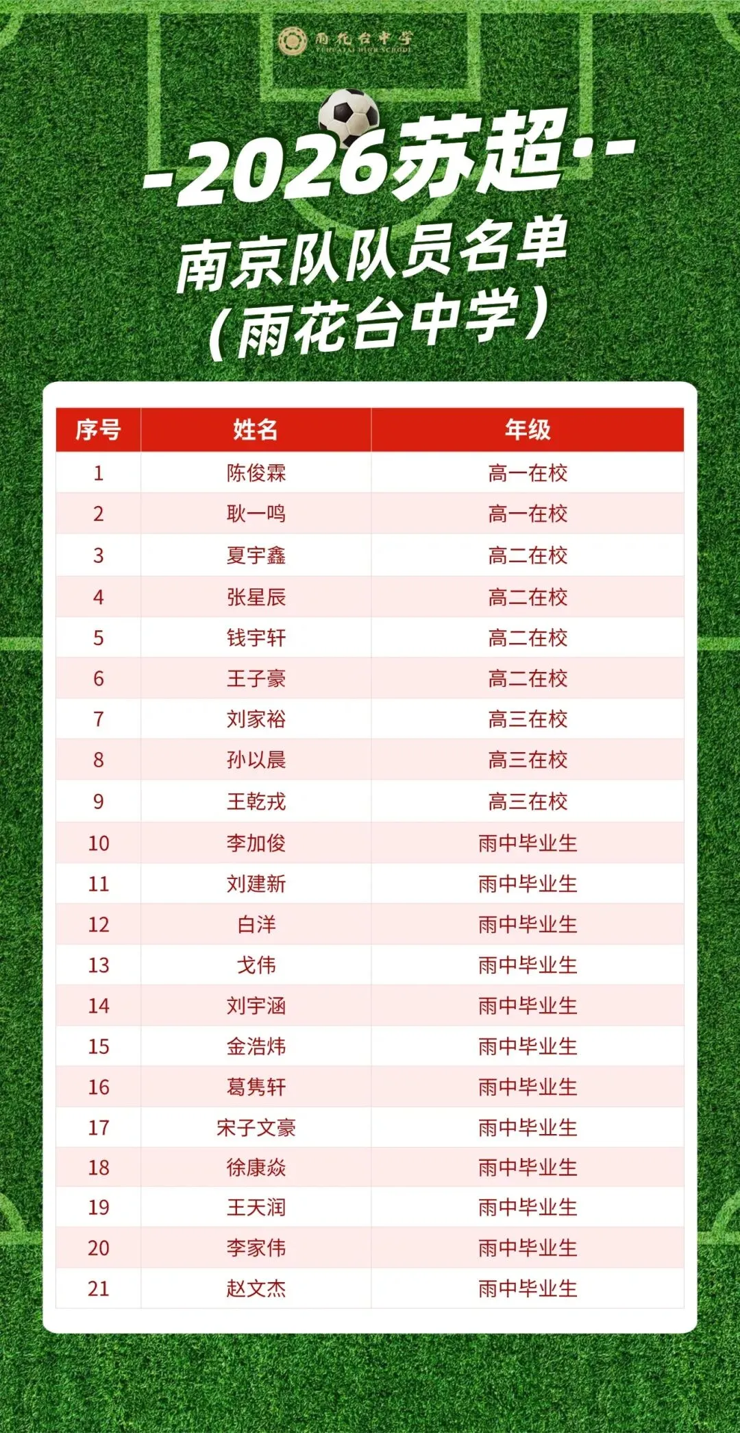 从去年的16人,到今年的21人,数字增长的背后,是雨中足球人才梯队的厚积薄发。这支平均年龄仅22.26岁的南京队,因为雨中学子的加入,充满了朝气与活力。
