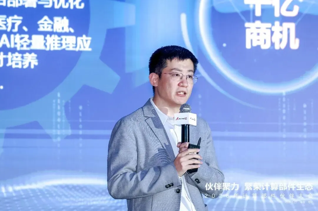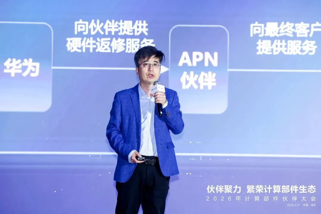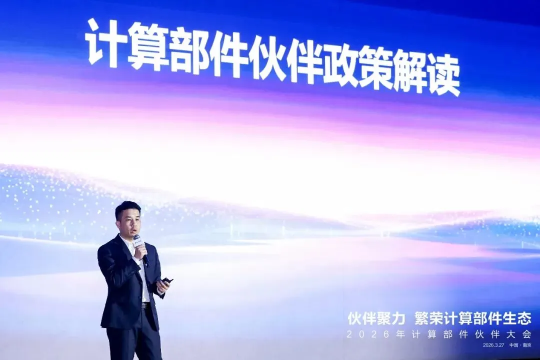 华为中国政企集成商管理与服务部部长刘铮指出,华为商业团队是为伙伴而生的队伍,面向26年千亿商机,伙伴与华为持续加大投入,政策与机制越来越完善,为迎接AI时代大机遇,升级部件伙伴4大政策,支持广大伙伴部件销售,围绕华为鲲鹏、昇腾全链路合作旅程,支持伙伴抢抓计算机遇。投入千万专项资金全方位支持伙伴共拓计算,发布“计算商业市场曜火行动”。
