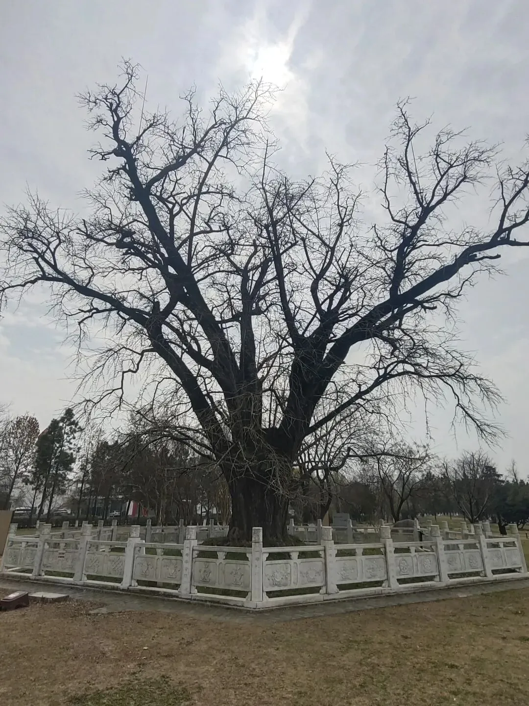 第一棵树位于一座建筑的西侧,名为“雷击复苏”,这是因为它曾遭遇过雷击,毁了一半,后来神奇地复活了,现在树干是中空的,还能从树身上看到“一线天”的景像。