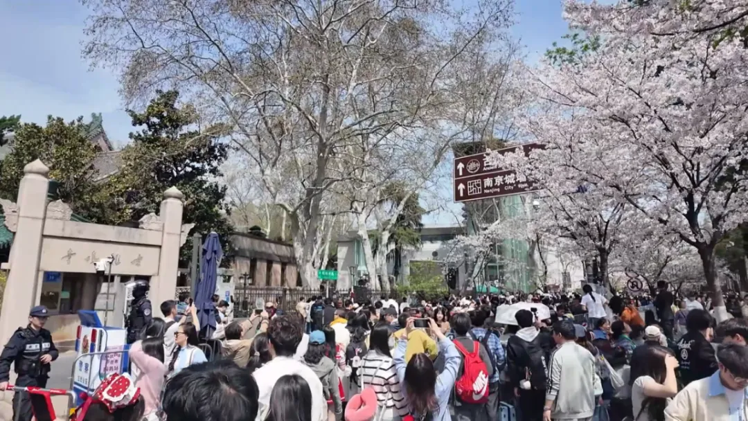 目前,城管部门在鸡鸣寺路上设置了23个管理节点,还有公安、环卫和城管等多部门不间断巡逻,维护现场秩序。城管部门表示,目前对于鸡鸣寺路的管理最为注重的是有序和安全两点,只要行人和游客能保证通行通畅,并且相对行为有序,管理部门一般只做引导,不做强制性劝离。对于部分携带明显器材和设备的商拍人员,会做友好劝离。进入管控区内部的人员,巡查人员会及时提醒,拍照后及时离开,不要逗留影响行人通行。