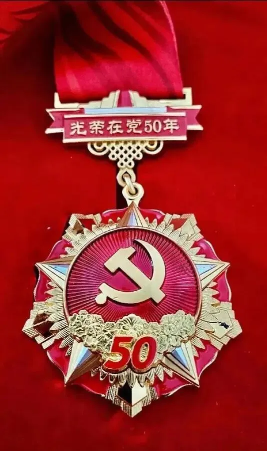 一枚入党五十年纪念章,捧在手心,是荣光,更是回望。从递交入党申请书的赤诚青年,到驻守前哨的炮兵战士;从历经考验的共青团员,到光荣入党的共产党员,五十载岁月匆匆,我的初心却从未改色。