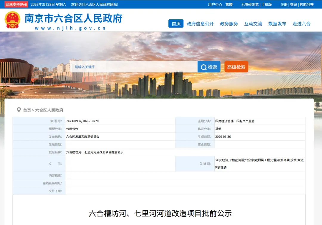 《六合经济开发区槽坊河河道改造提升项目》、《六合经济开发区七里河河道改造提升项目》前期已通过部门联审,现就该项目征求公众意见,项目具体信息公示如下:
