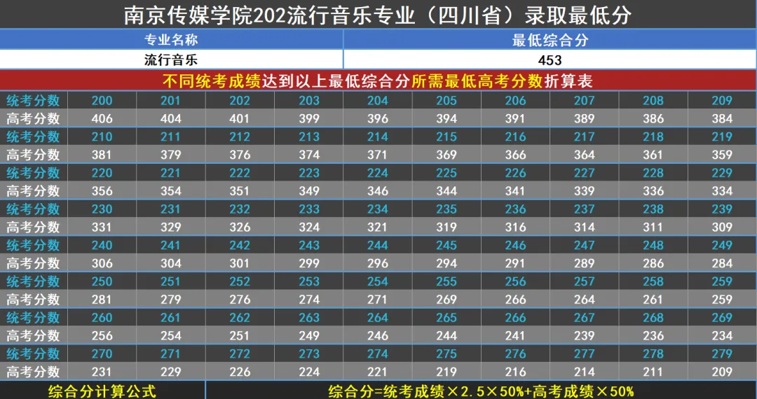 >南京传媒学院2025年流行音乐专业(四川省)录取最低综合分对应文化和专业要求