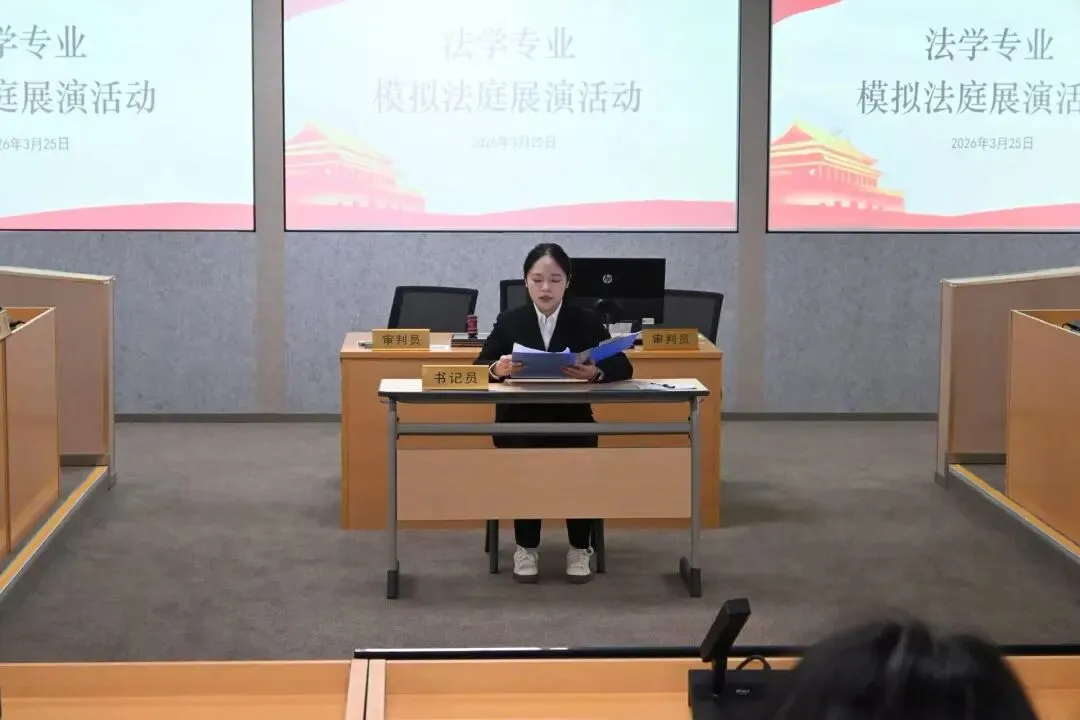 为深化法学实践教学,助力学生直观感知法律程序与专业实务,3月25日下午2点30分,法学专业模拟法庭展演活动在高淳校区B5-208哈佛教室顺利开展。本次活动由王语嫣进行主持,24级法学学生负责展演,25级法学学生到场观摩,现场气氛庄重而热烈。