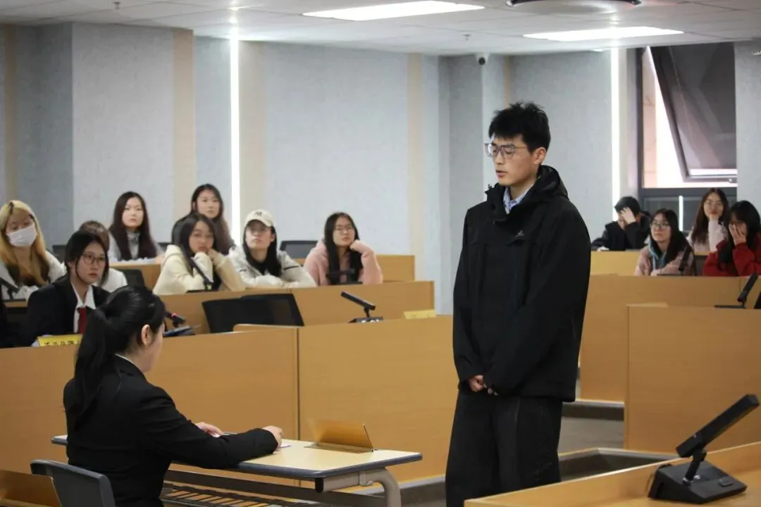 庭审展演结束后,现场进入互动答疑环节。25级5班班导师李昕元作为班导师代表询问了25级同学的观摩感悟与疑问,并详细介绍了第十三届“紫金杯”模拟法庭等比赛的相关情况,鼓励同学把握机会、积极参赛,在实践中提升法律实务能力,拓宽专业视野。