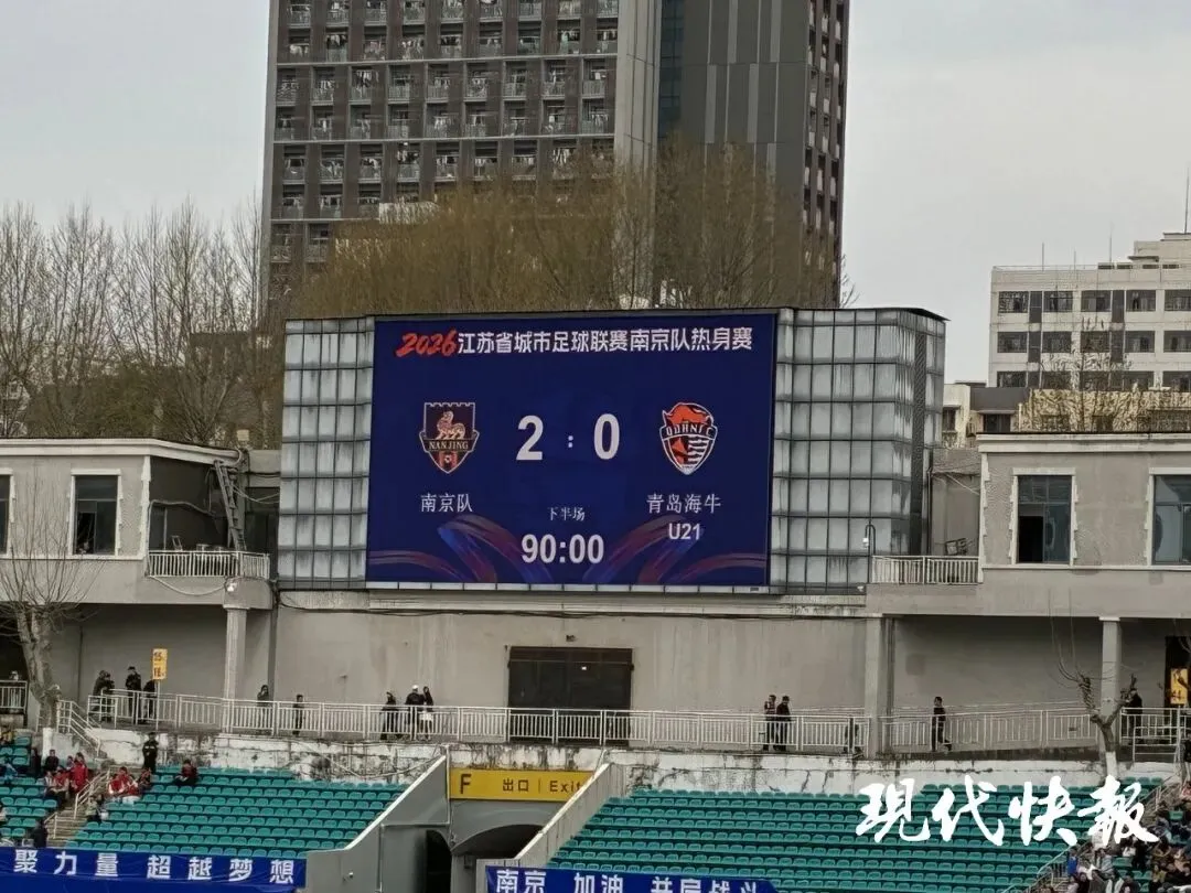 3月28日下午,苏超南京队热身赛在五台山体育场举行,对手是中超职业球队青岛海牛的U21梯队。凭借滕帅在上半场行将结束时打进的点球和马俊在比赛最后时刻的进球,南京队2比0击败对手,为新赛季苏超正赛的征程开了一个好头。
